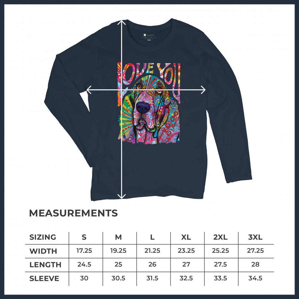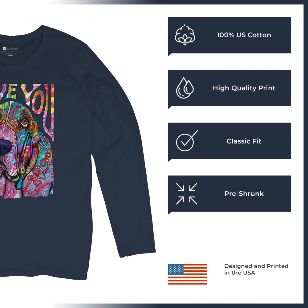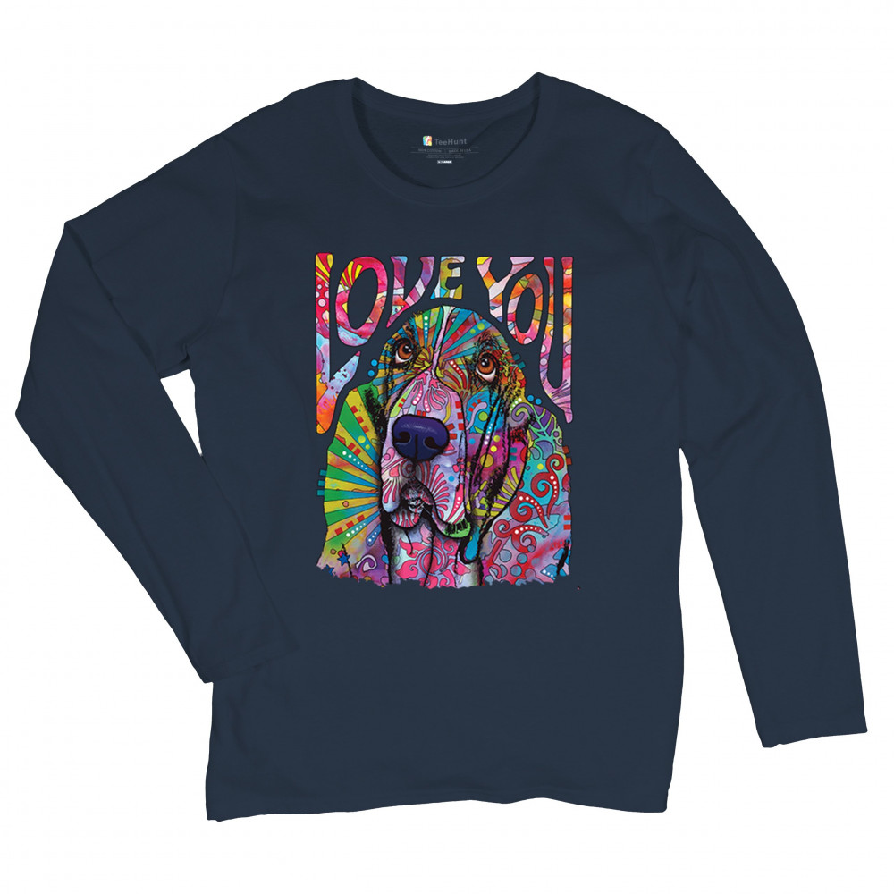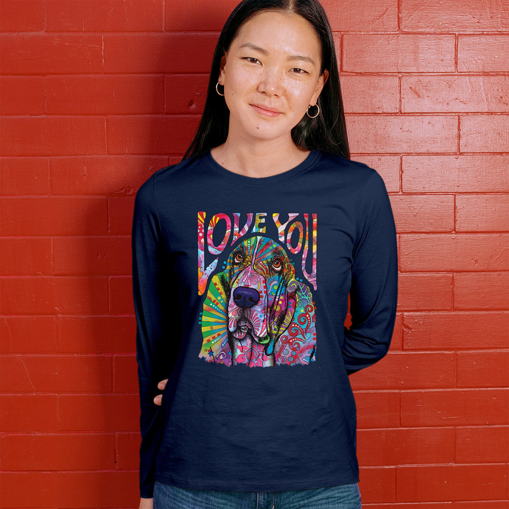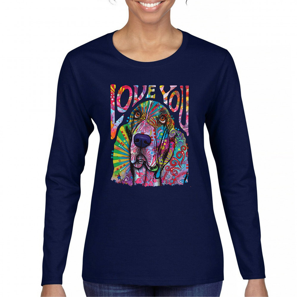 DEAN RUSSO CUTE LOVE YOU BASSET women's long sleeve t-shirt colorful dog pet navy blue