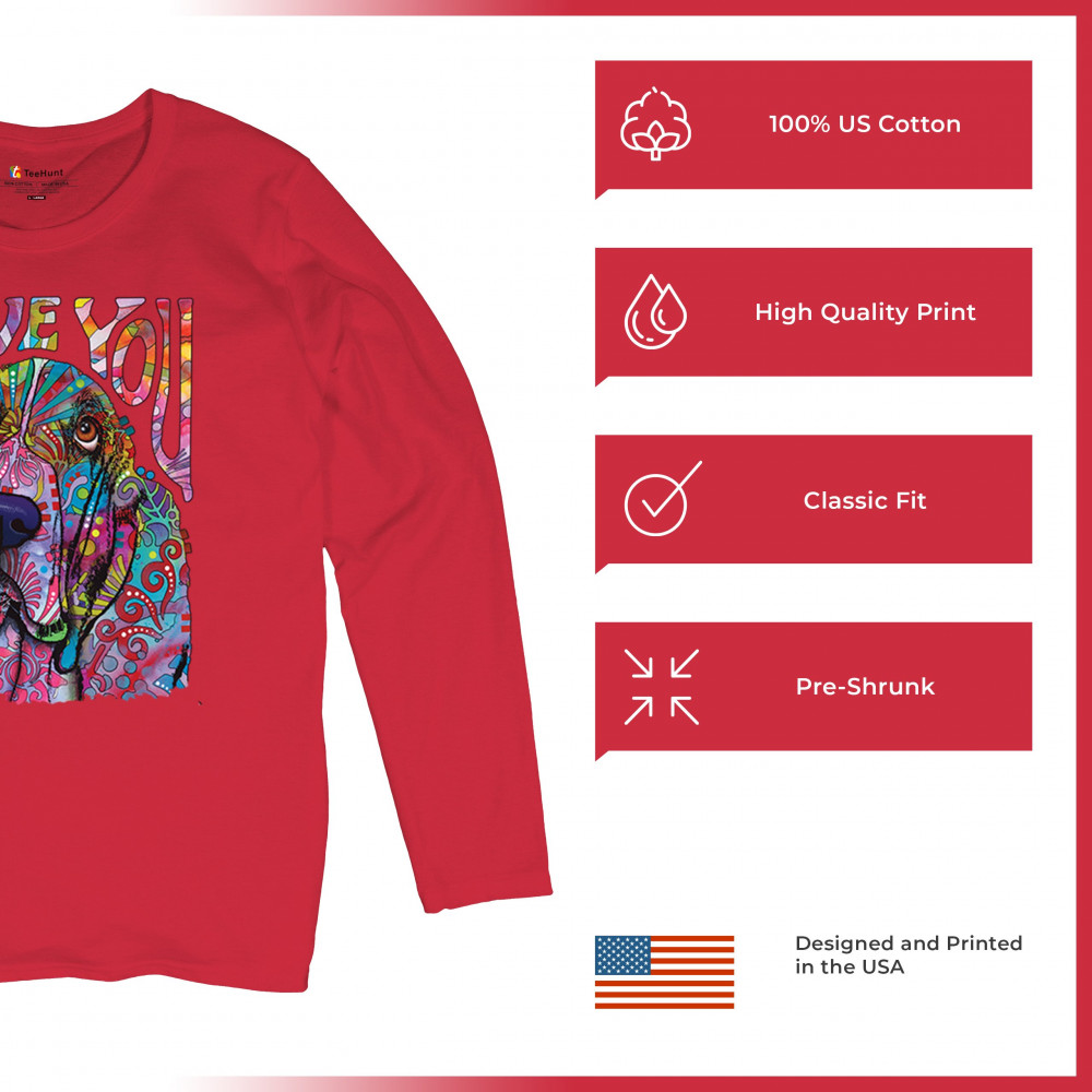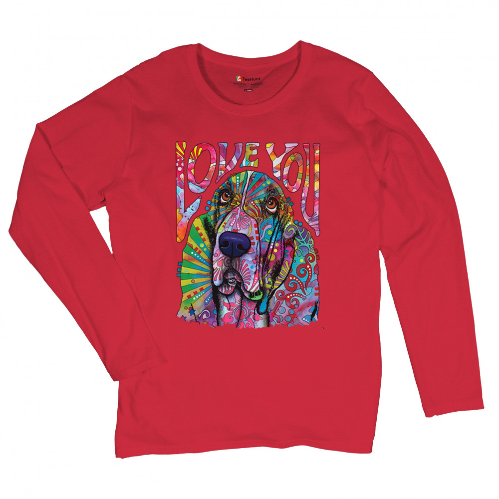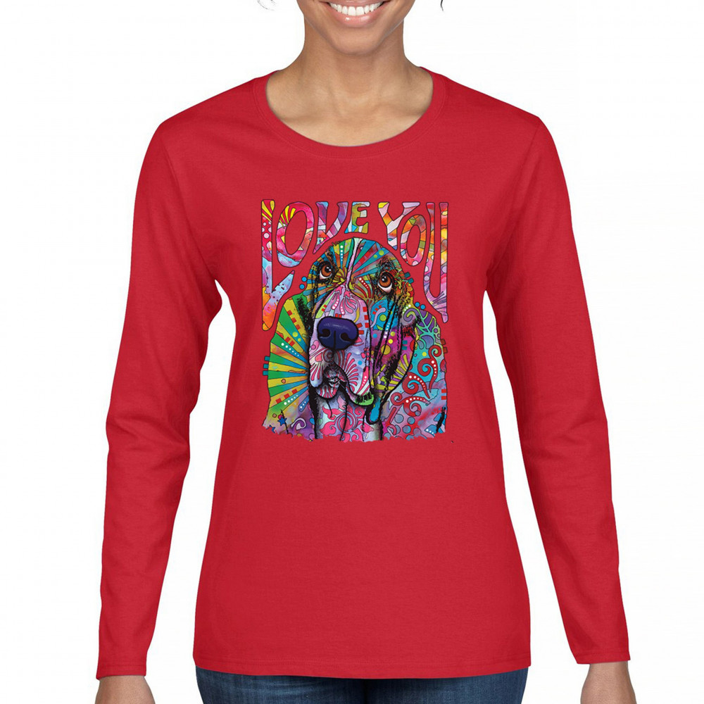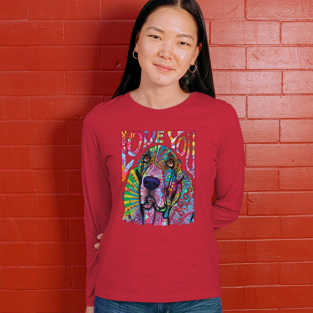 DEAN RUSSO CUTE LOVE YOU BASSET women's long sleeve t-shirt colorful dog pet red