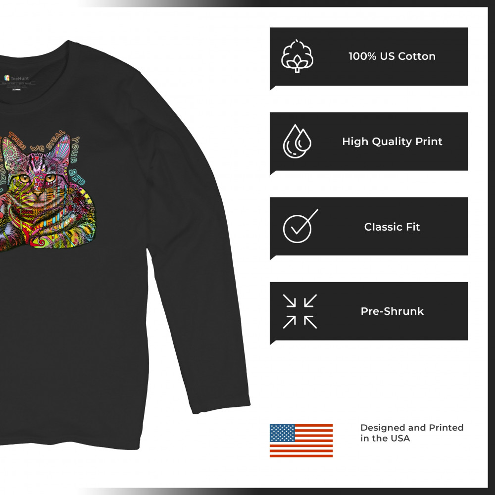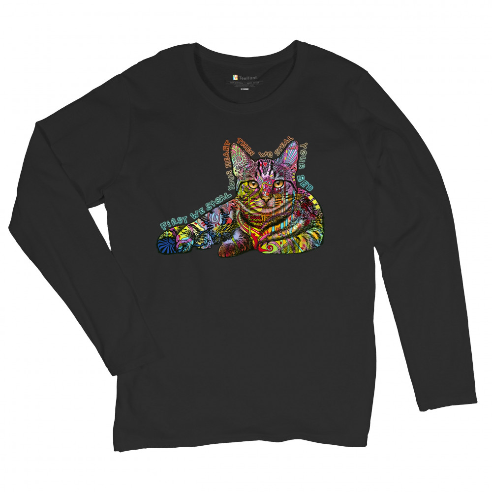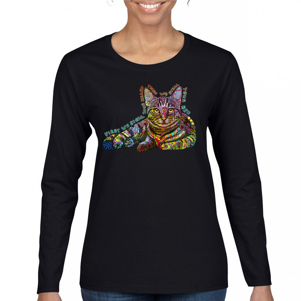 DEAN RUSSO CUTE NEON CAT dean russo cute cat women's long sleeve t-shirt first we steal your heart pet black