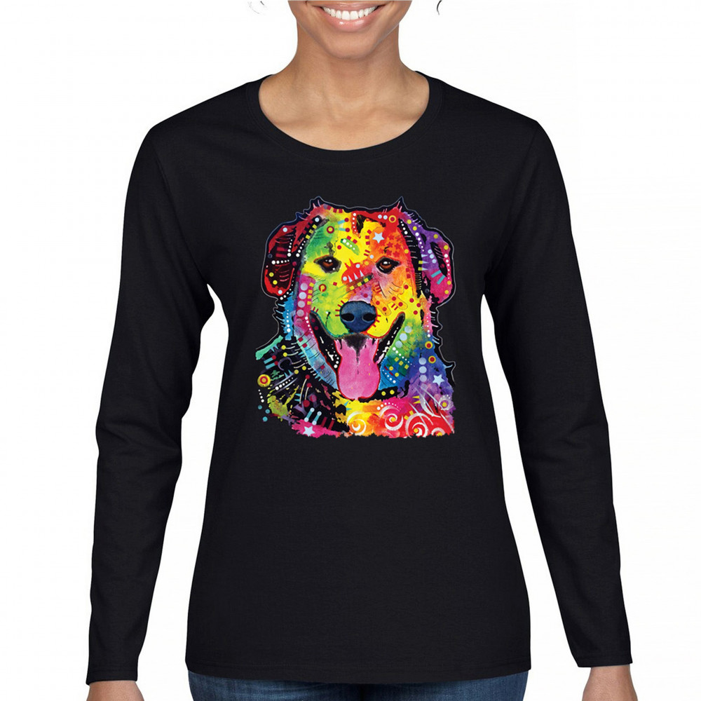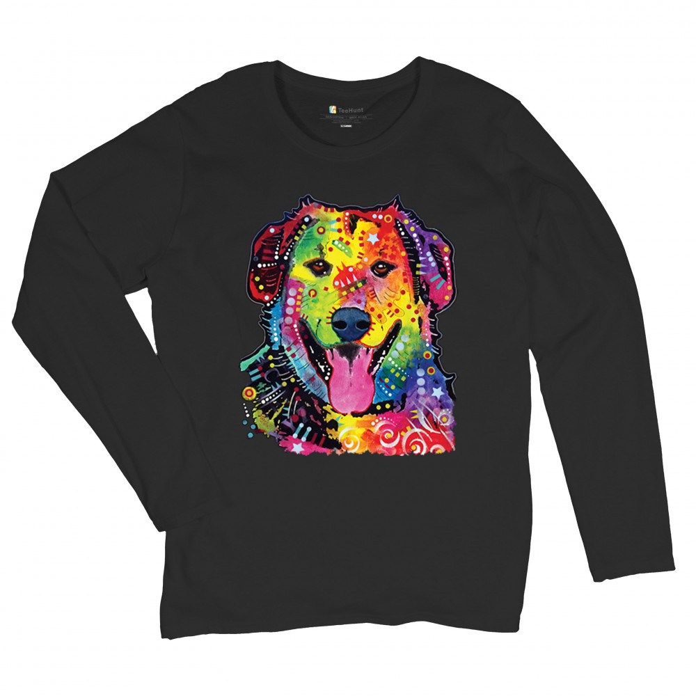 DEAN RUSSO CUTE NEON DOG women's long sleeve t-shirt adopt a pet colorful pet black