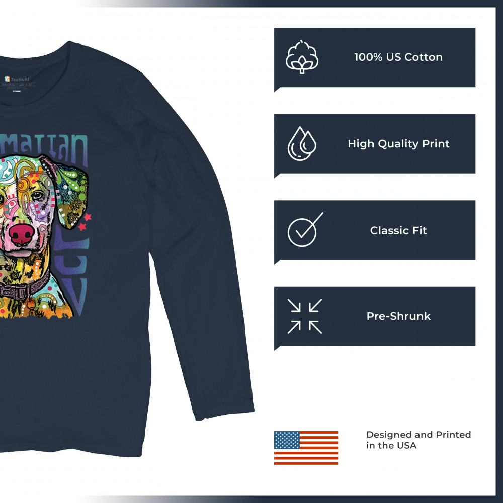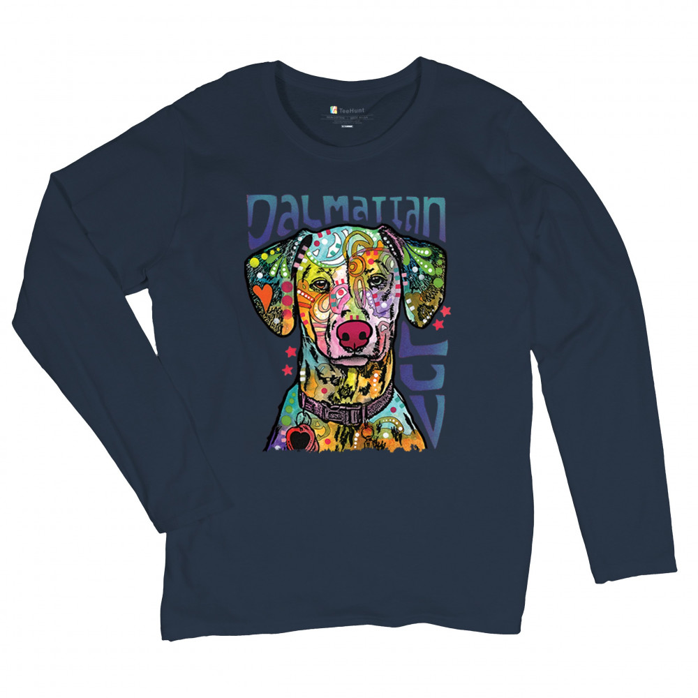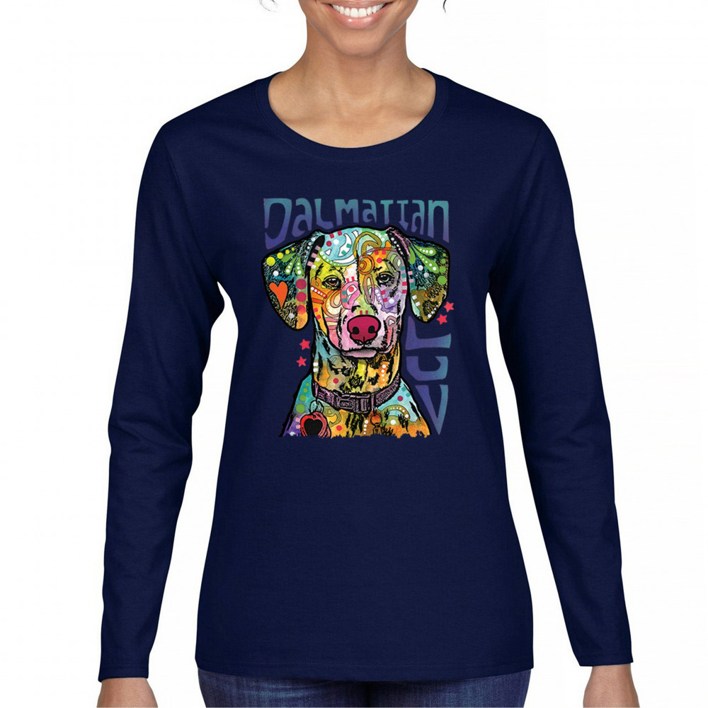 DEAN RUSSO DALMATIAN LUV COLORFUL DOG women's long sleeve t-shirt neon puppy navy blue