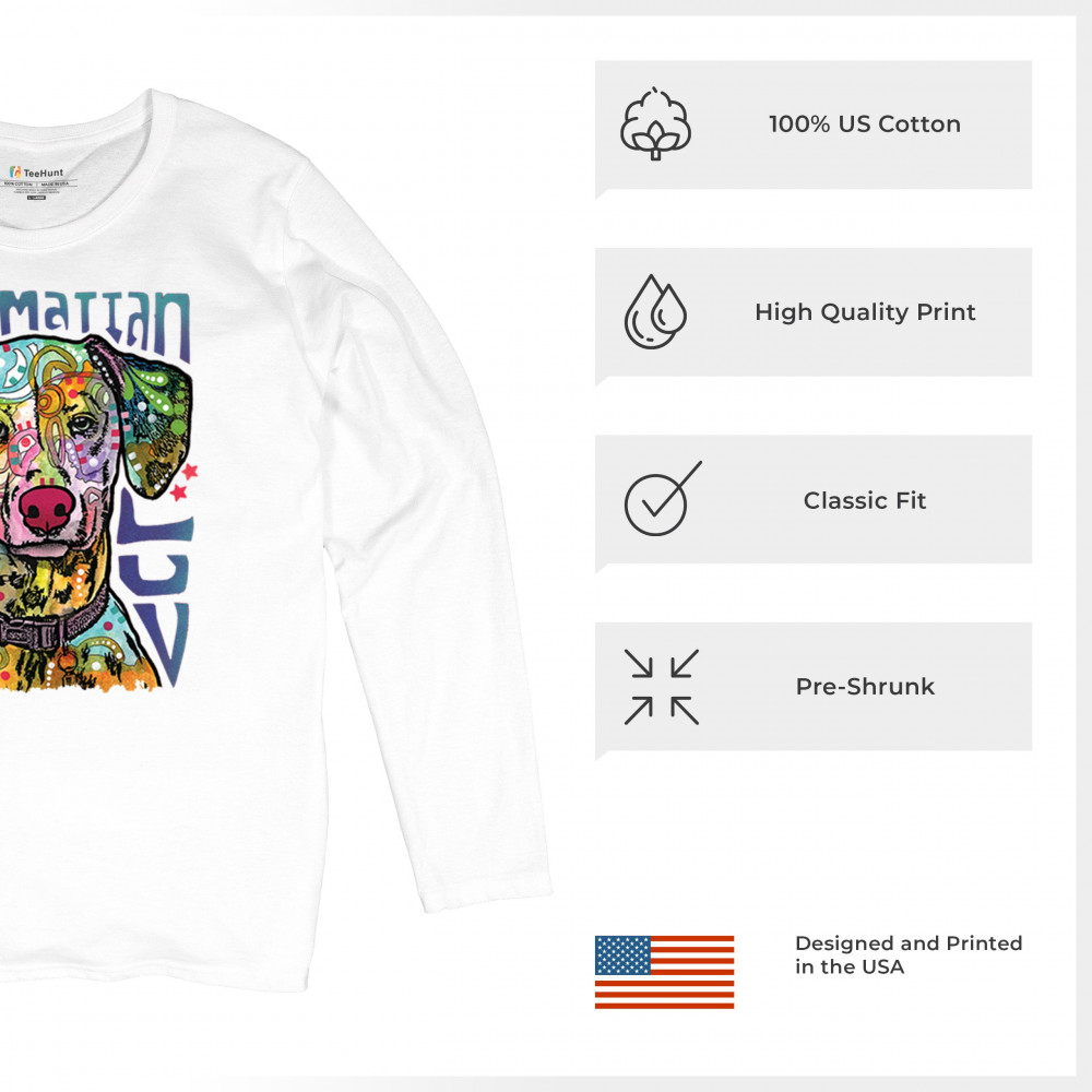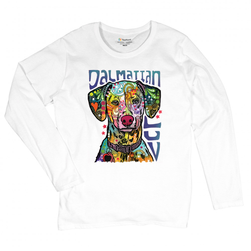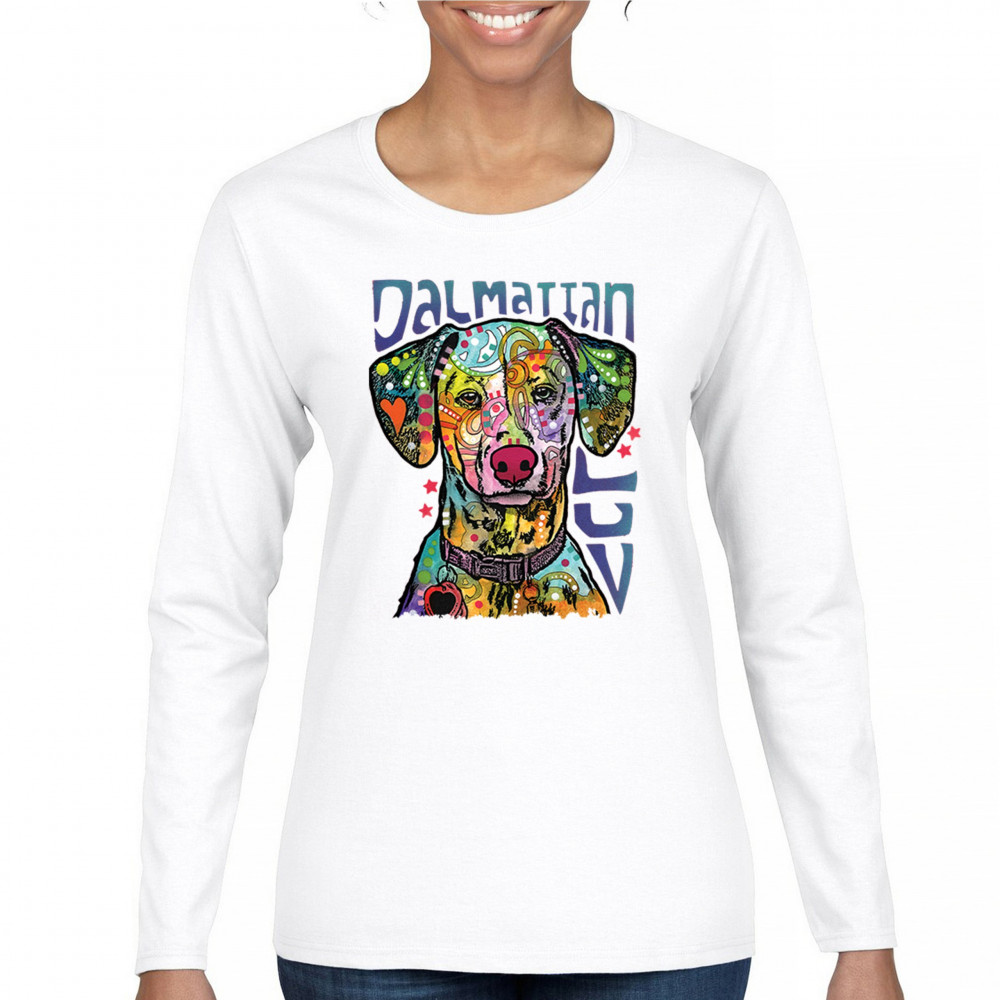 DEAN RUSSO DALMATIAN LUV COLORFUL DOG women's long sleeve t-shirt neon puppy white