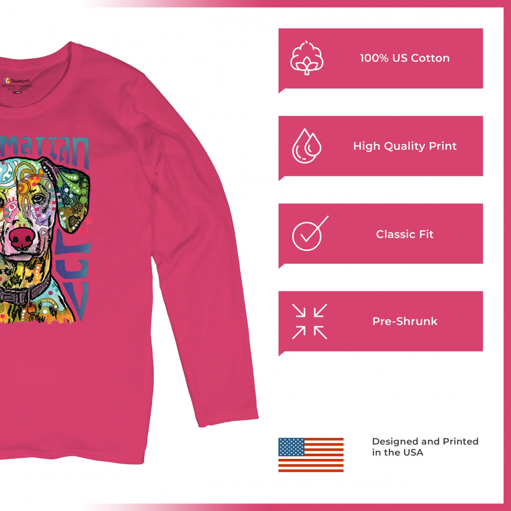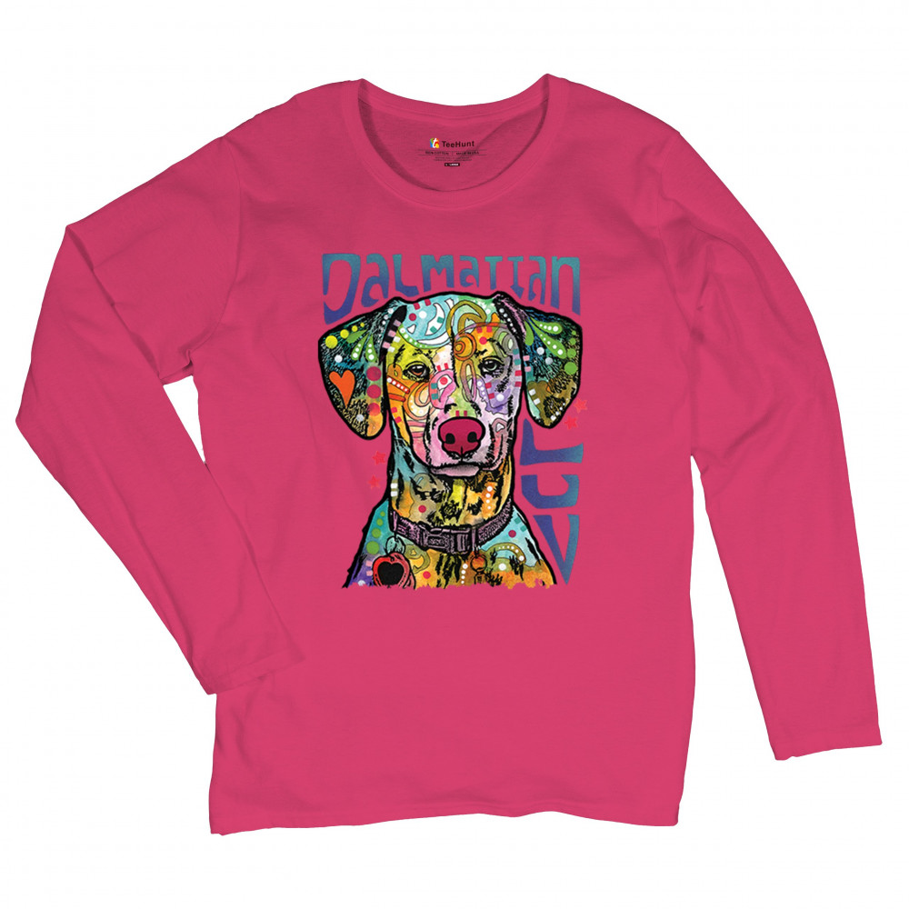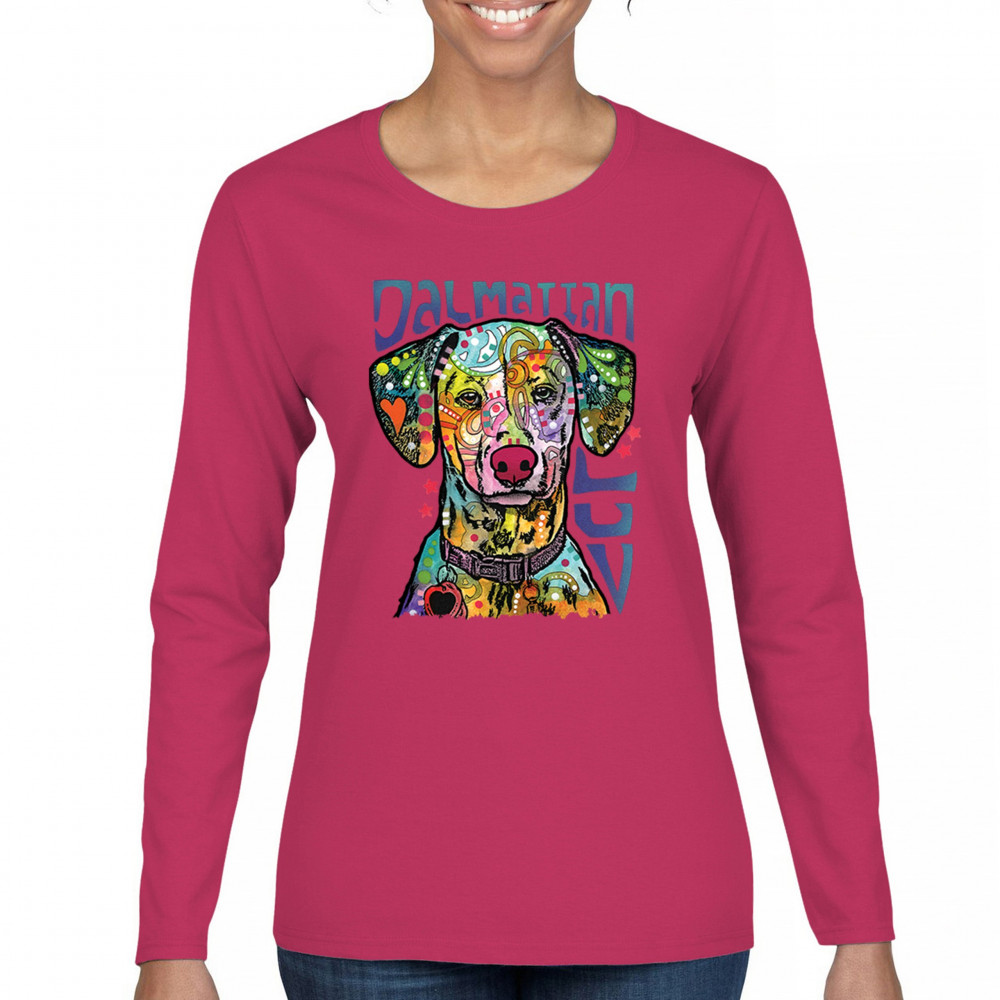 DEAN RUSSO DALMATIAN LUV COLORFUL DOG women's long sleeve t-shirt neon puppy pink
