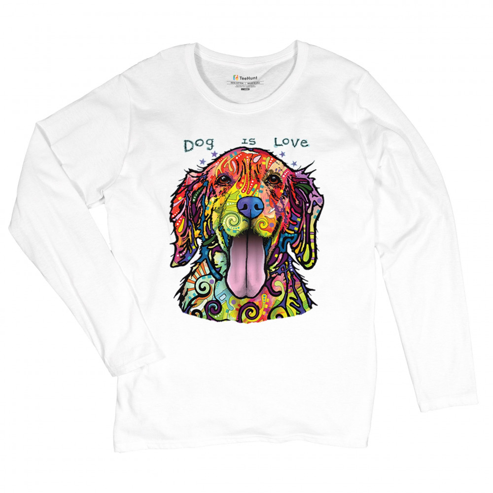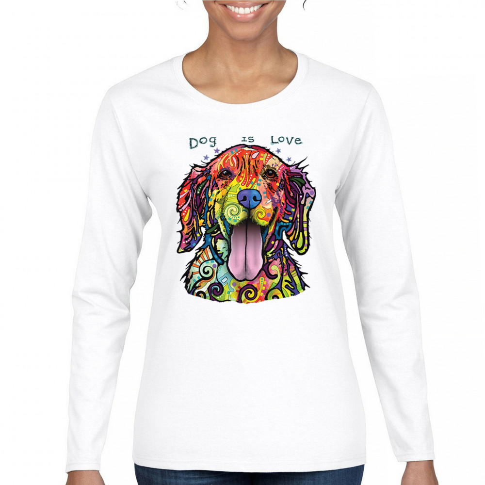 DEAN RUSSO DOG IS LOVE LABRADOR RETRIEVER women's long sleeve t-shirt happy pet white