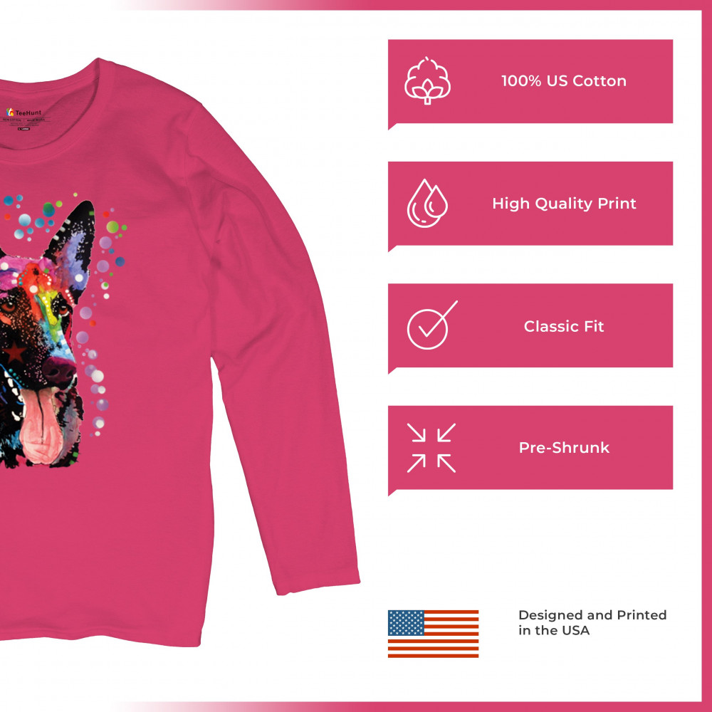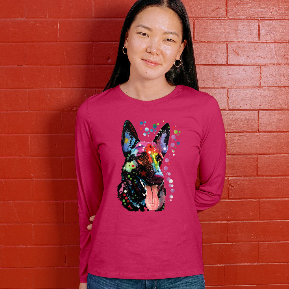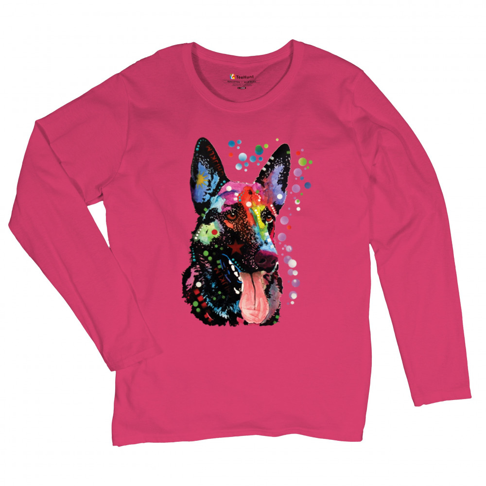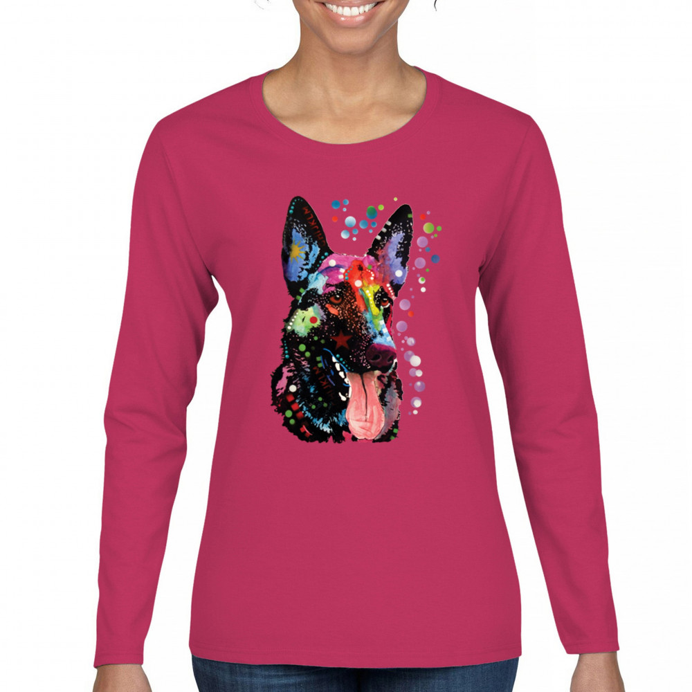 DEAN RUSSO GERMAN SHEPHERD women's long sleeve t-shirt colorful dog best friend pink