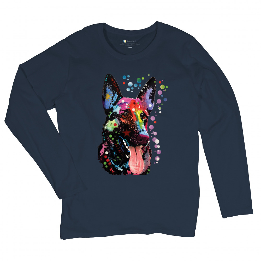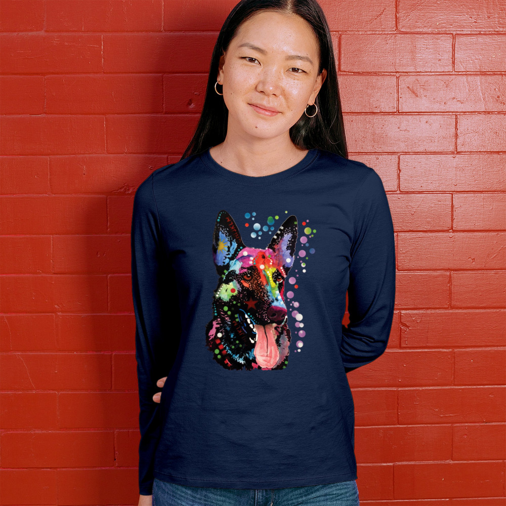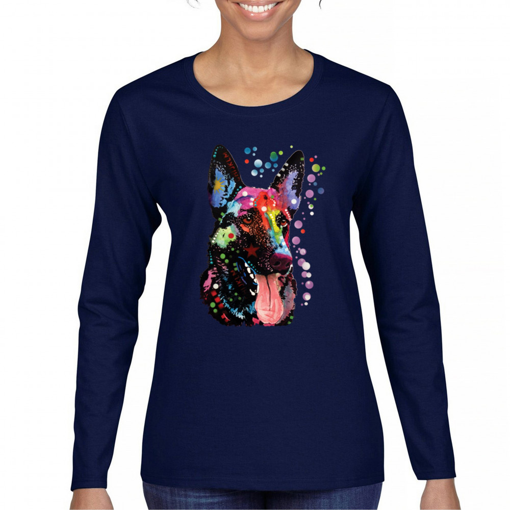 DEAN RUSSO GERMAN SHEPHERD women's long sleeve t-shirt colorful dog best friend navy blue