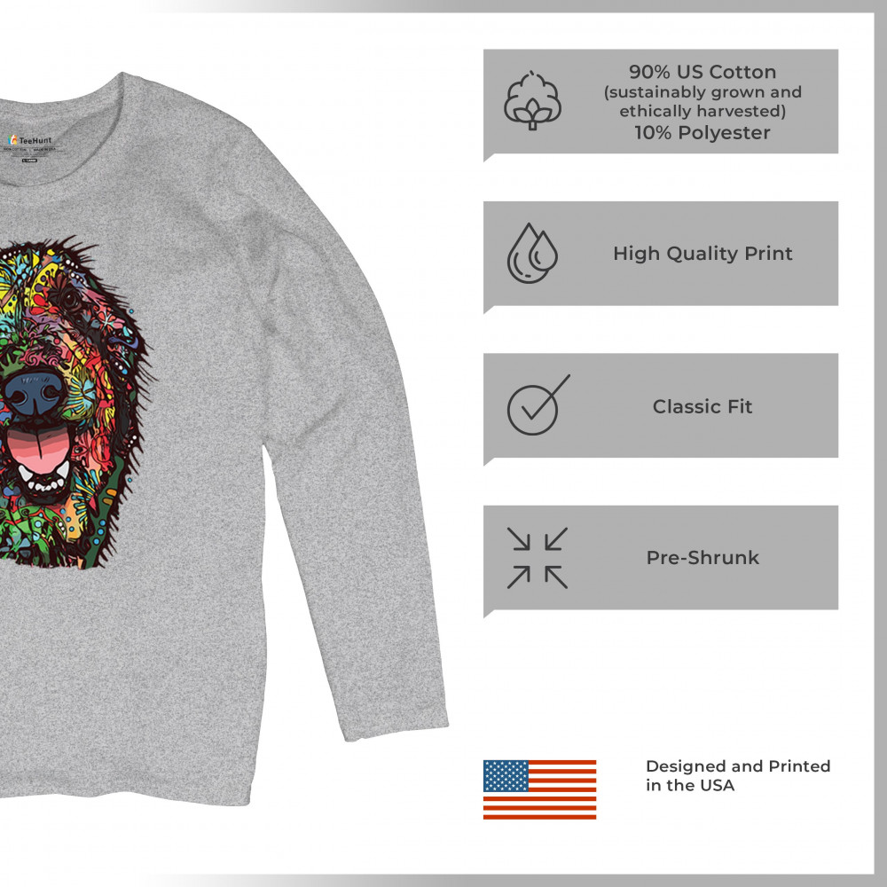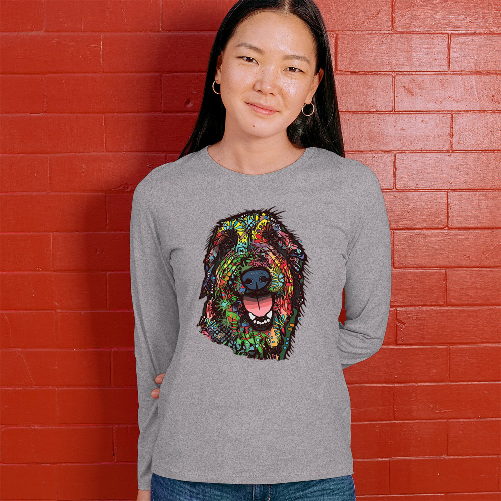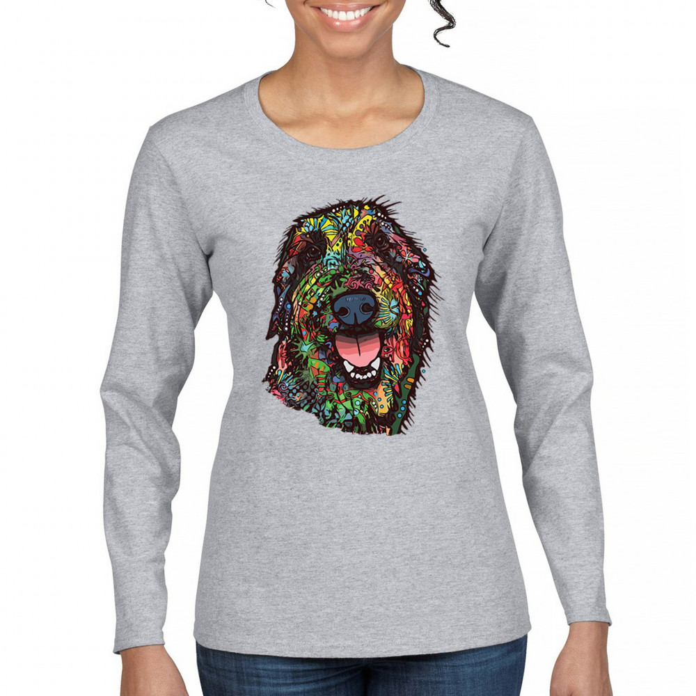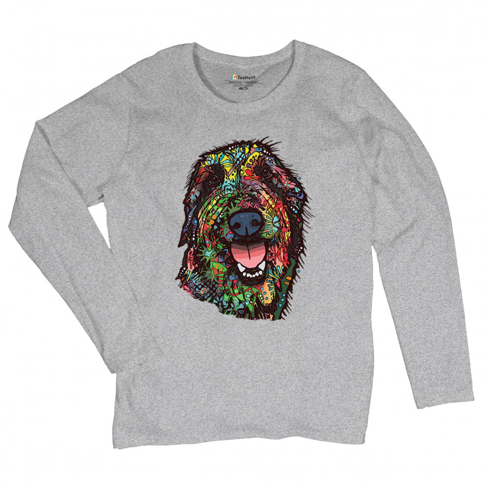 FUNNY FEELING HAPPY DOG FACE dean russo happy dog face women's long sleeve t-shirt funny feeling pet gray
