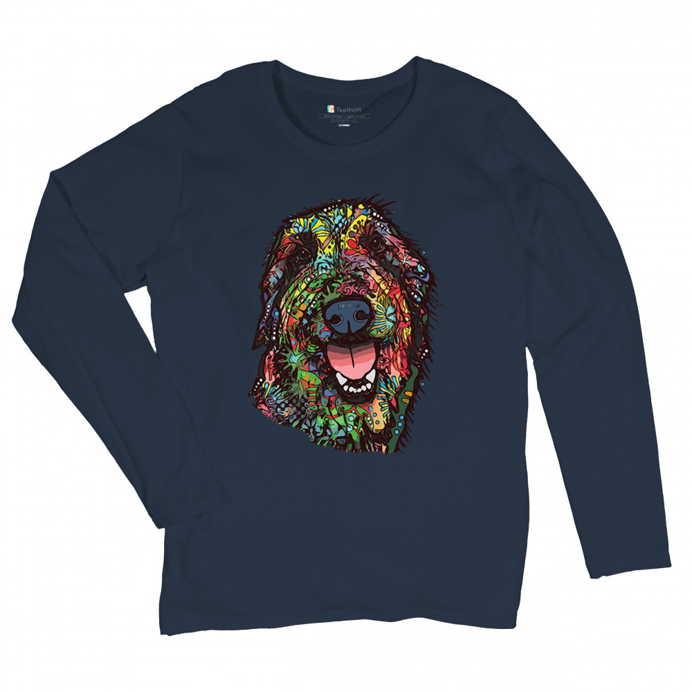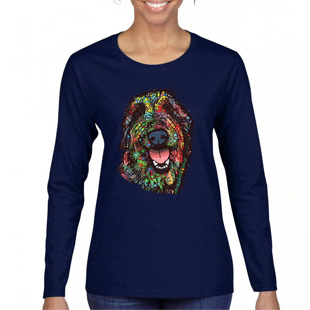 FUNNY FEELING HAPPY DOG FACE dean russo happy dog face women's long sleeve t-shirt funny feeling pet navy blue