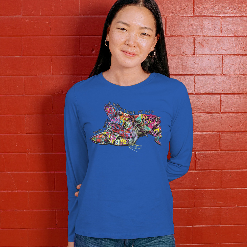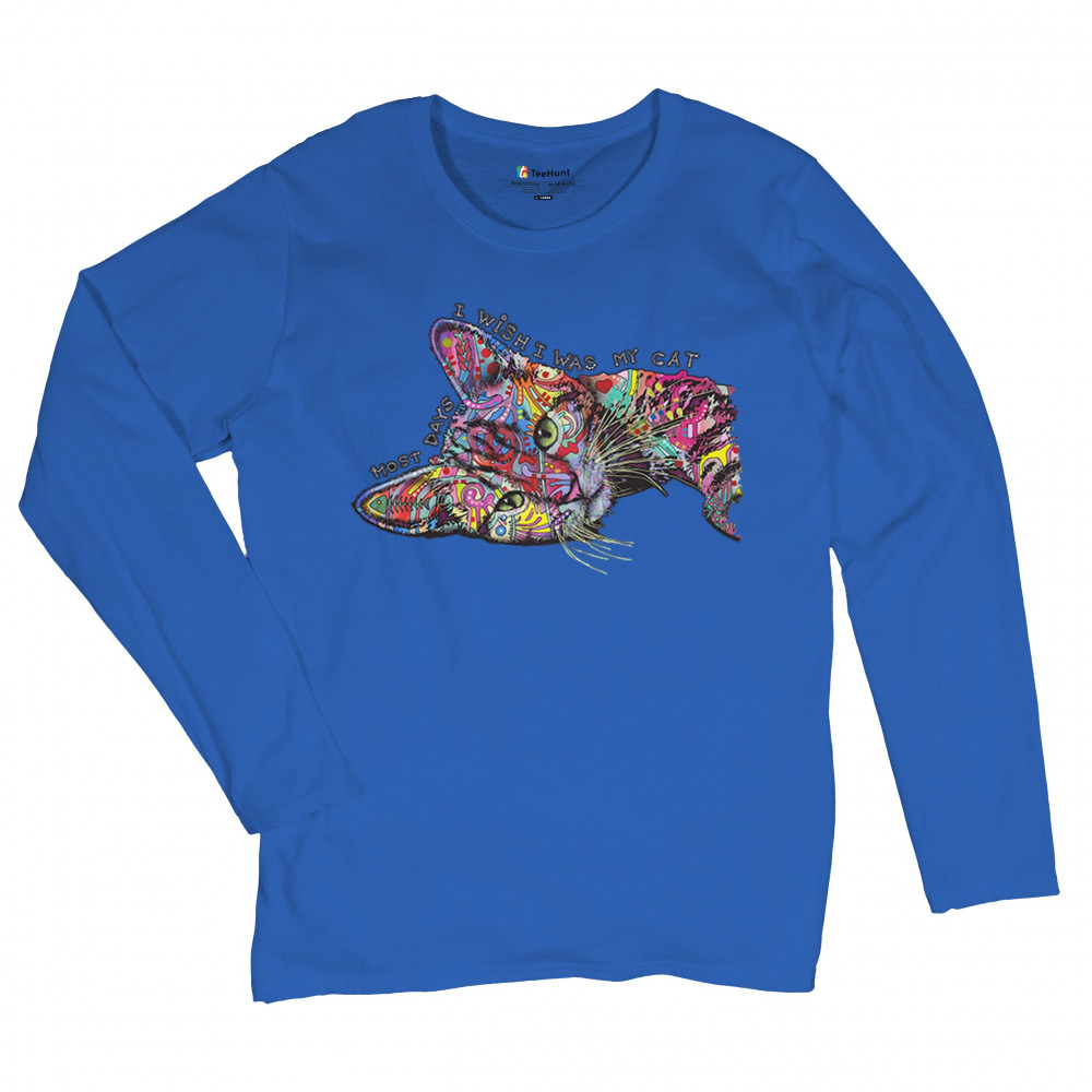 DEAN RUSSO MOST DAYS I WISH I WAS MY CAT women's long sleeve t-shirt kitten pet royal blue