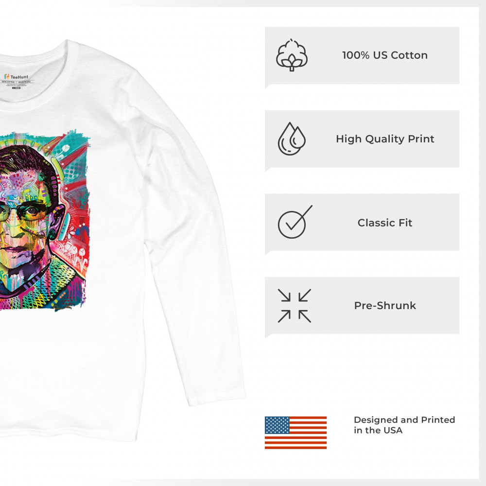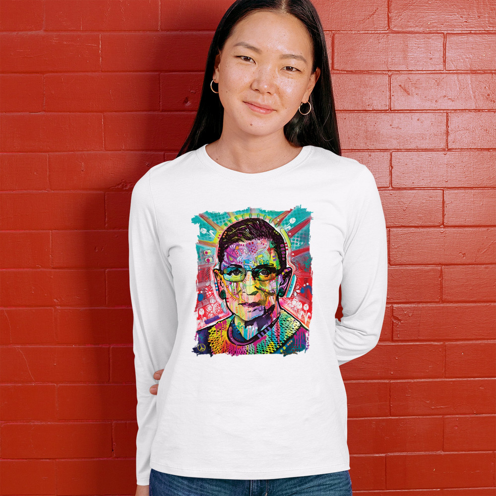DEAN RUSSO RUTH BADER GINSBURG women's long sleeve t-shirt pop culture icon rbg white