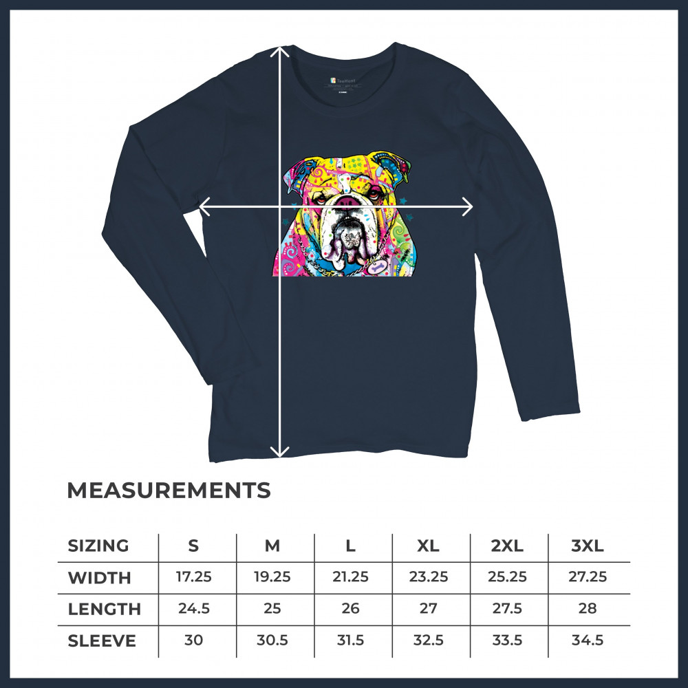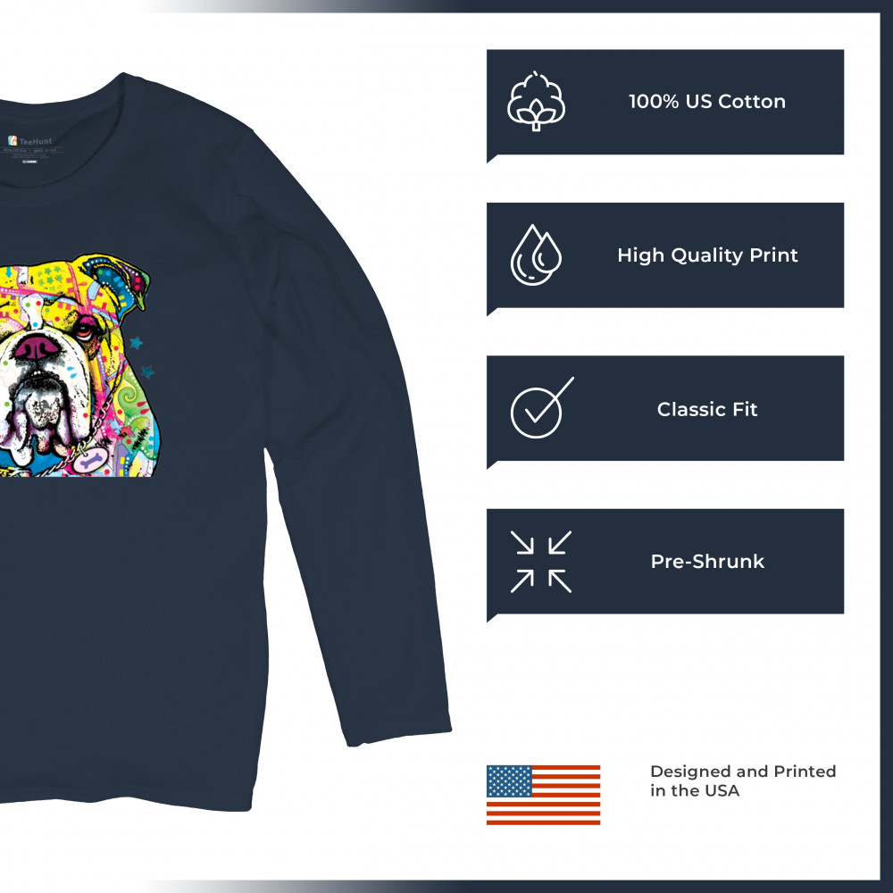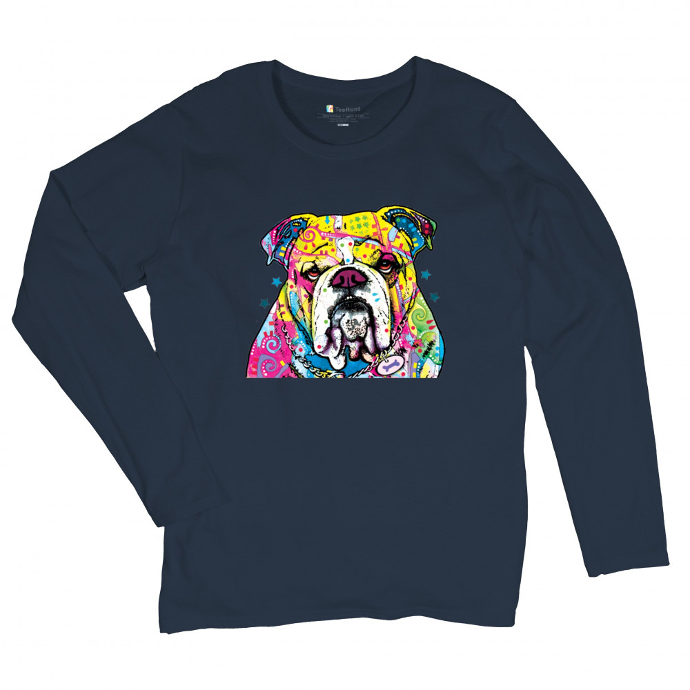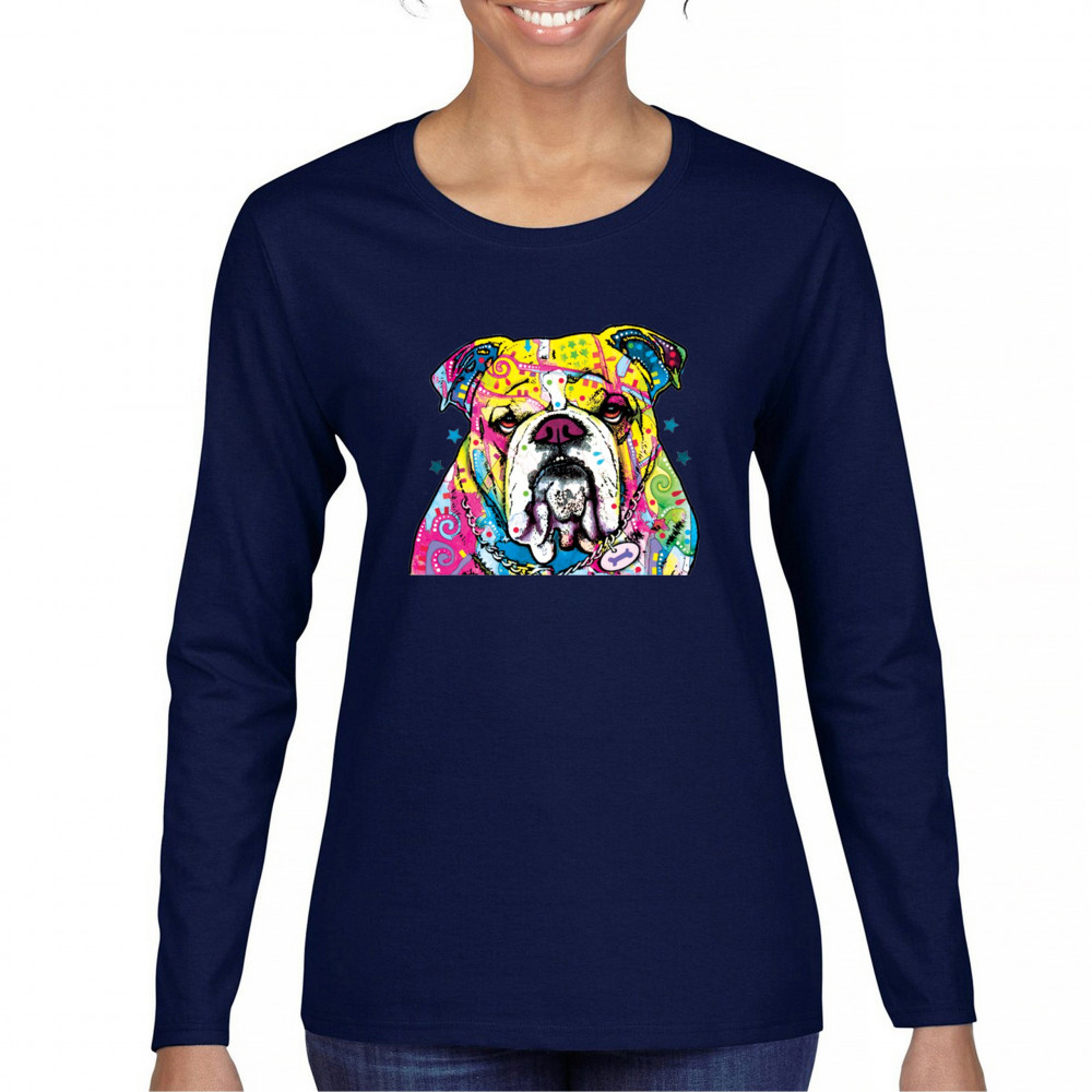 DEAN RUSSO SERIOUS BULLDOG women's long sleeve t-shirt colorful dog best friend navy blue