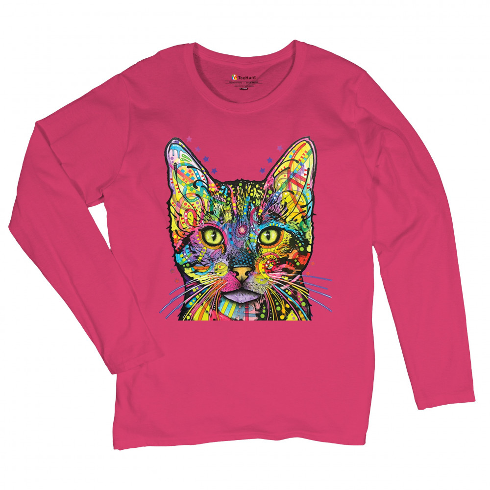 DEAN RUSSO SHIVA CAT STARE women's long sleeve t-shirt neon colorful kitten pink