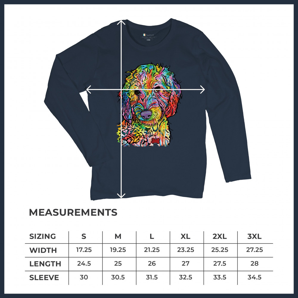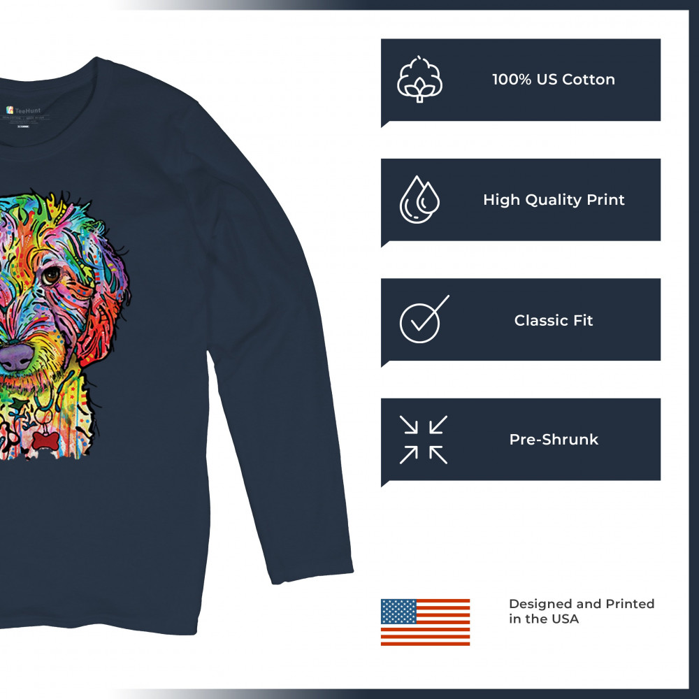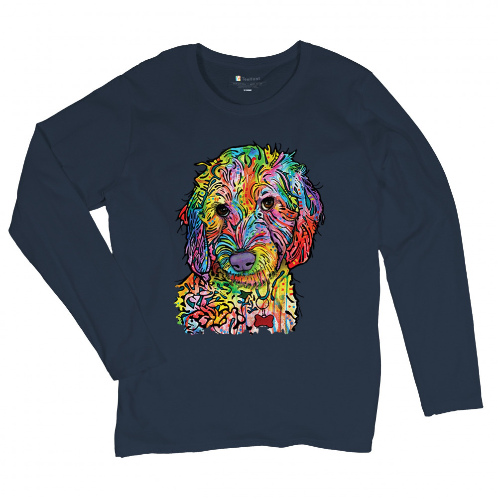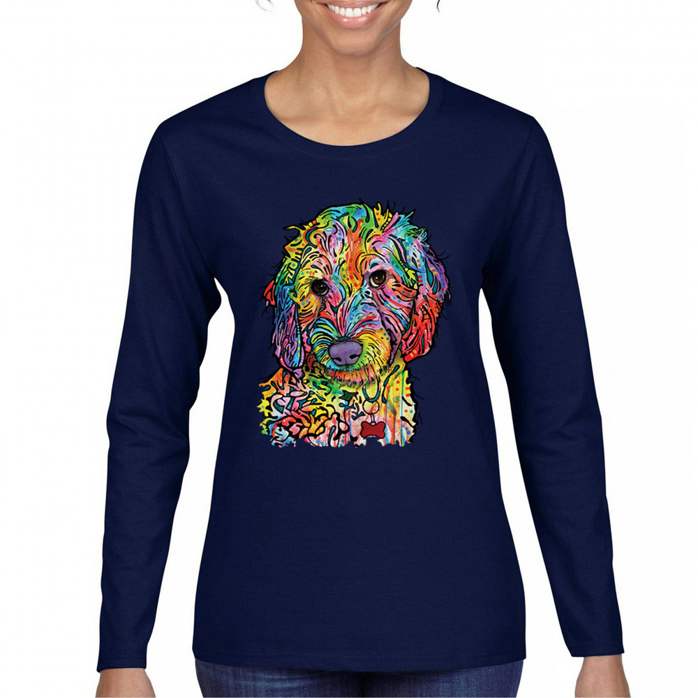 DEAN RUSSO SWEET POODLE women's long sleeve t-shirt dog pattern puppy adopt pet navy blue