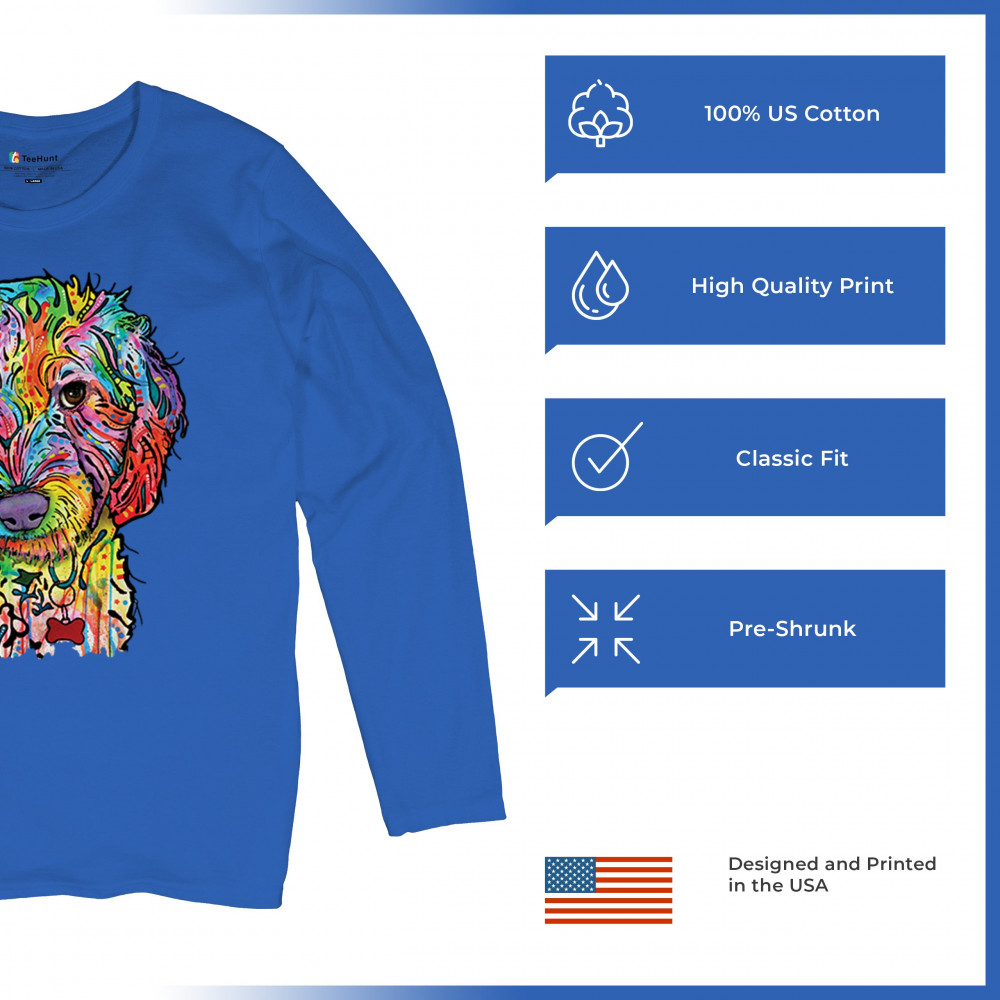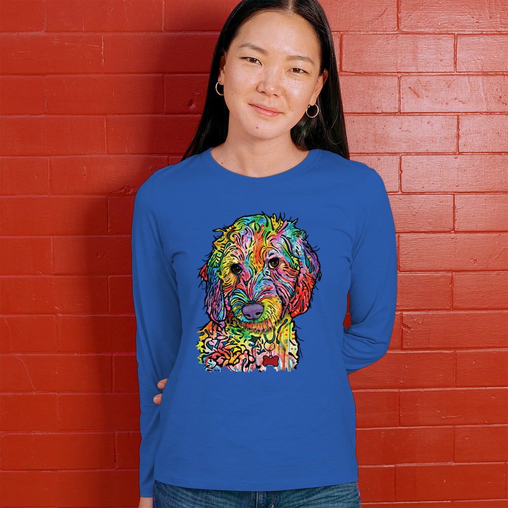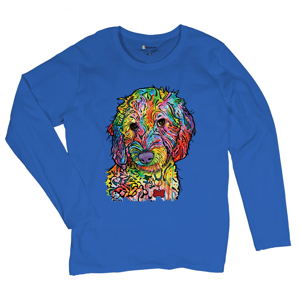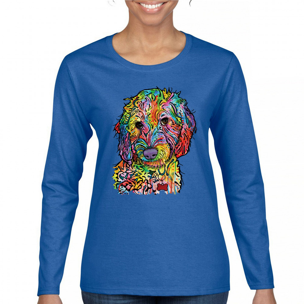 DEAN RUSSO SWEET POODLE women's long sleeve t-shirt dog pattern puppy adopt pet royal blue