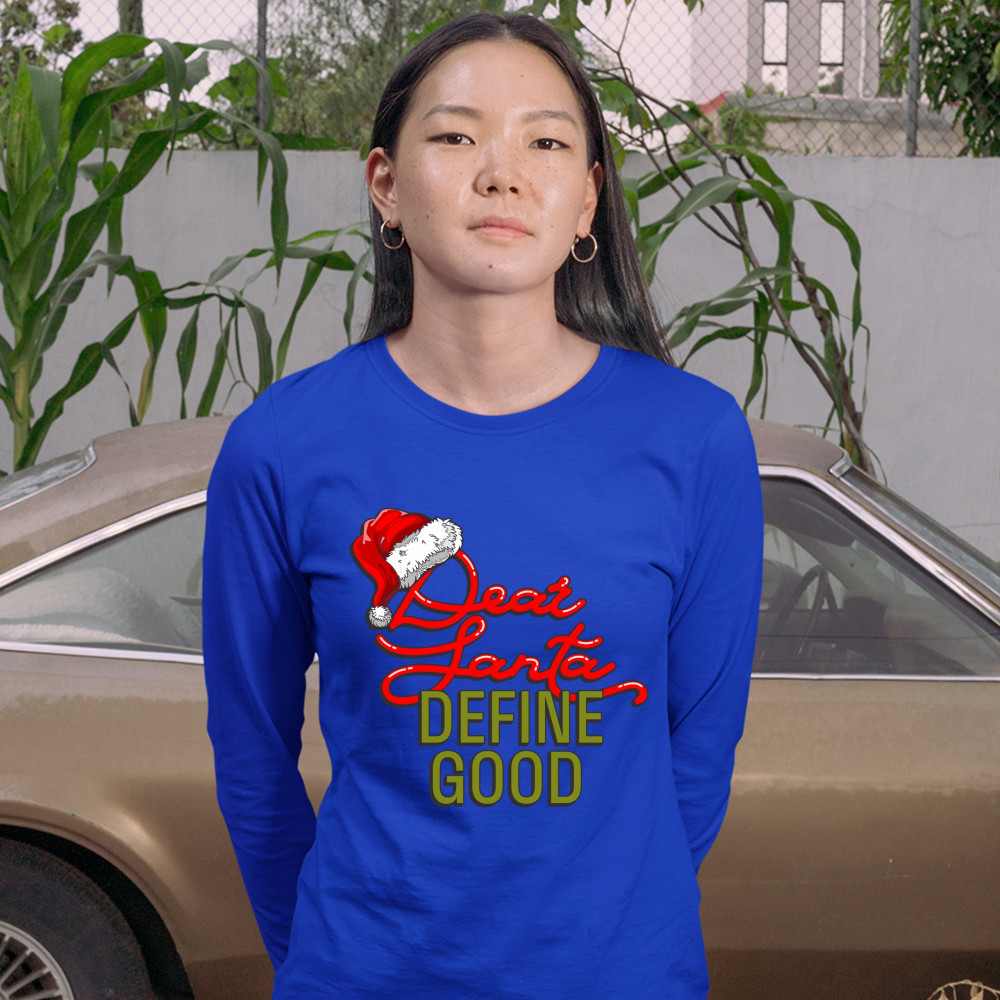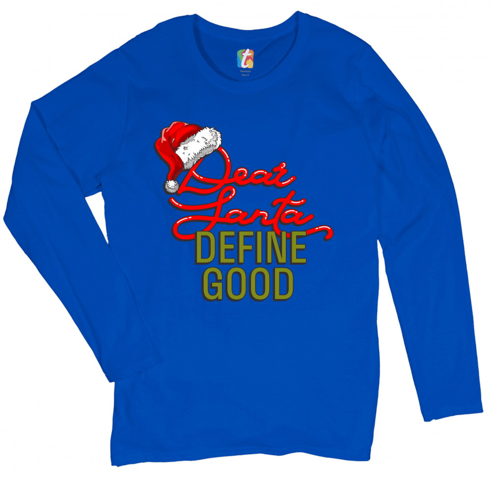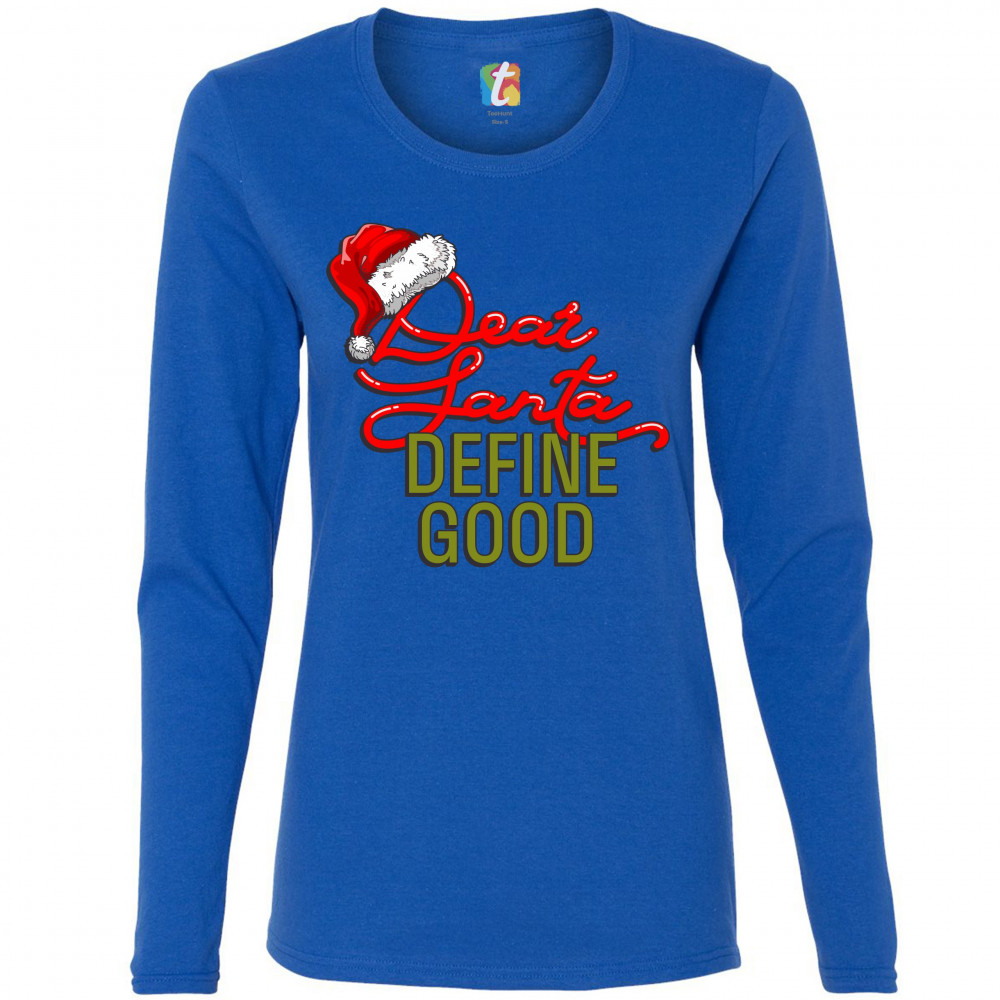 DEAR SANTA DEFINE GOOD women's long sleeve t-shirt merry christmas naughty xmas royal blue