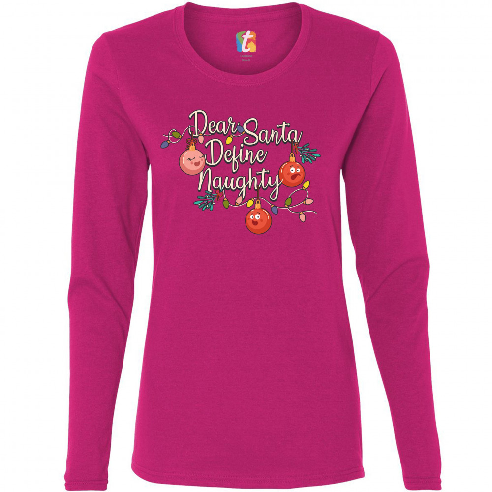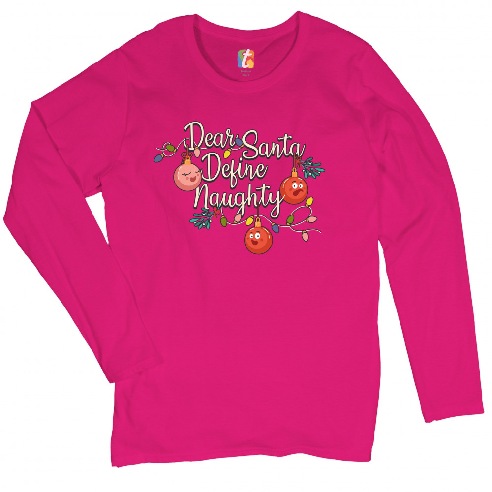 DEAR SANTA DEFINE NAUGHTY women's long sleeve t-shirt merry christmas funny pink