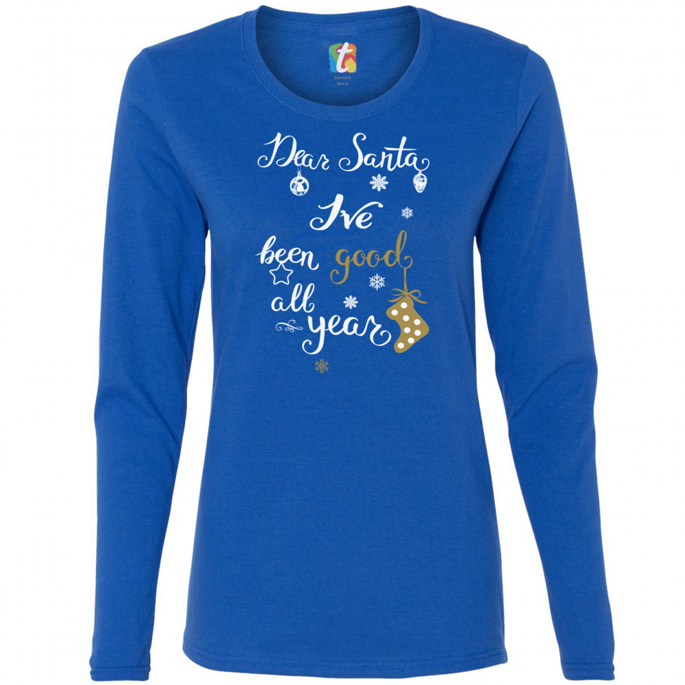 DEAR SANTA I'VE BEEN GOOD ALL YEAR women's long sleeve t-shirt funny christmas xmas royal blue