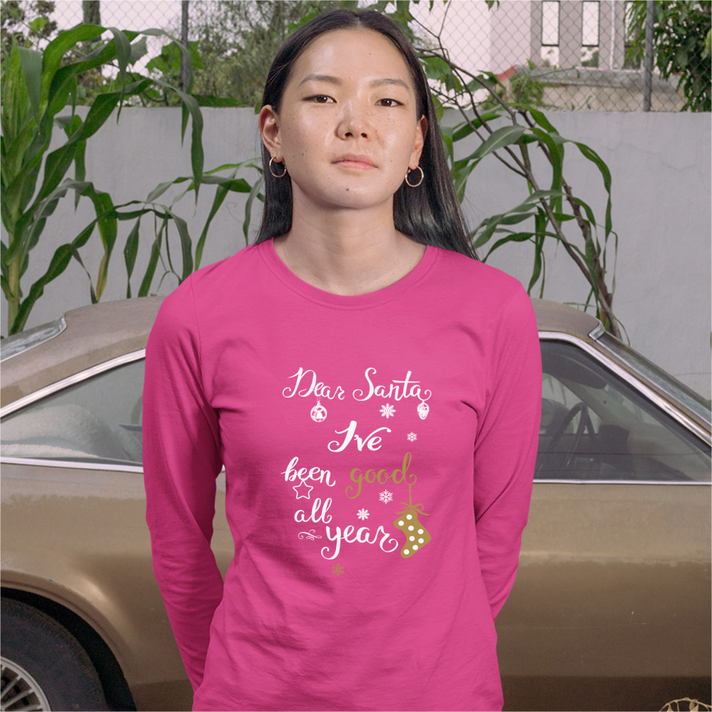 DEAR SANTA I'VE BEEN GOOD ALL YEAR women's long sleeve t-shirt funny christmas xmas hot pink