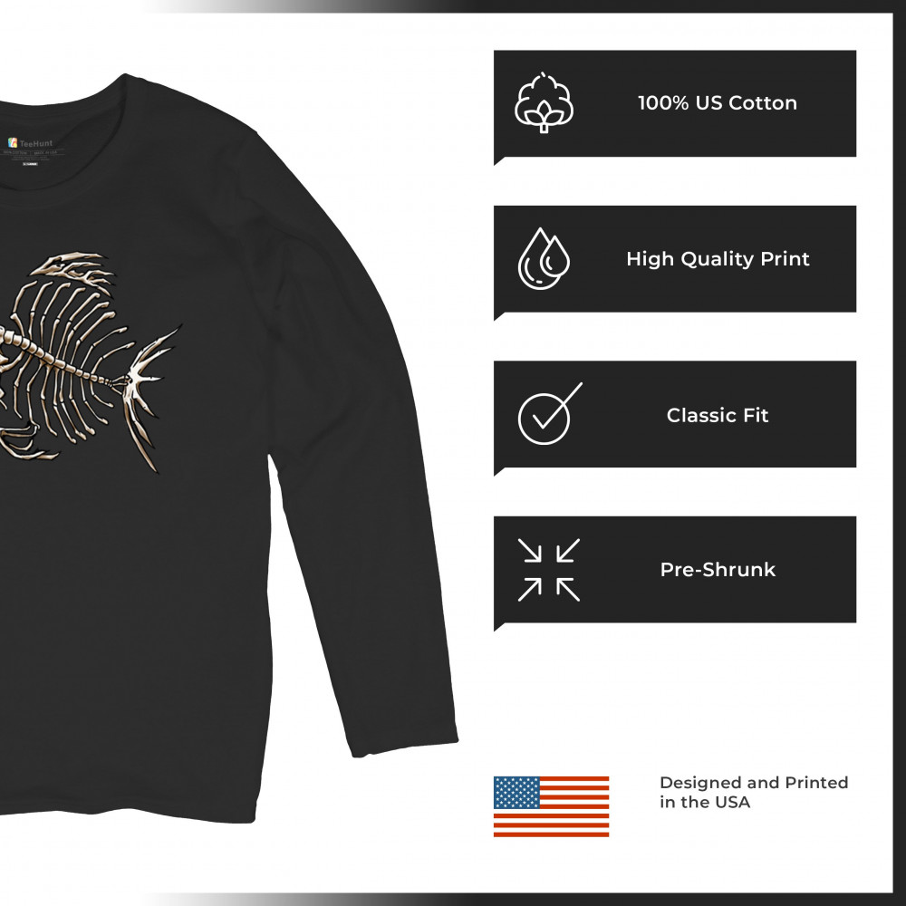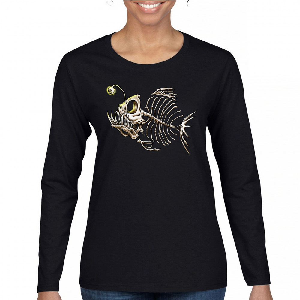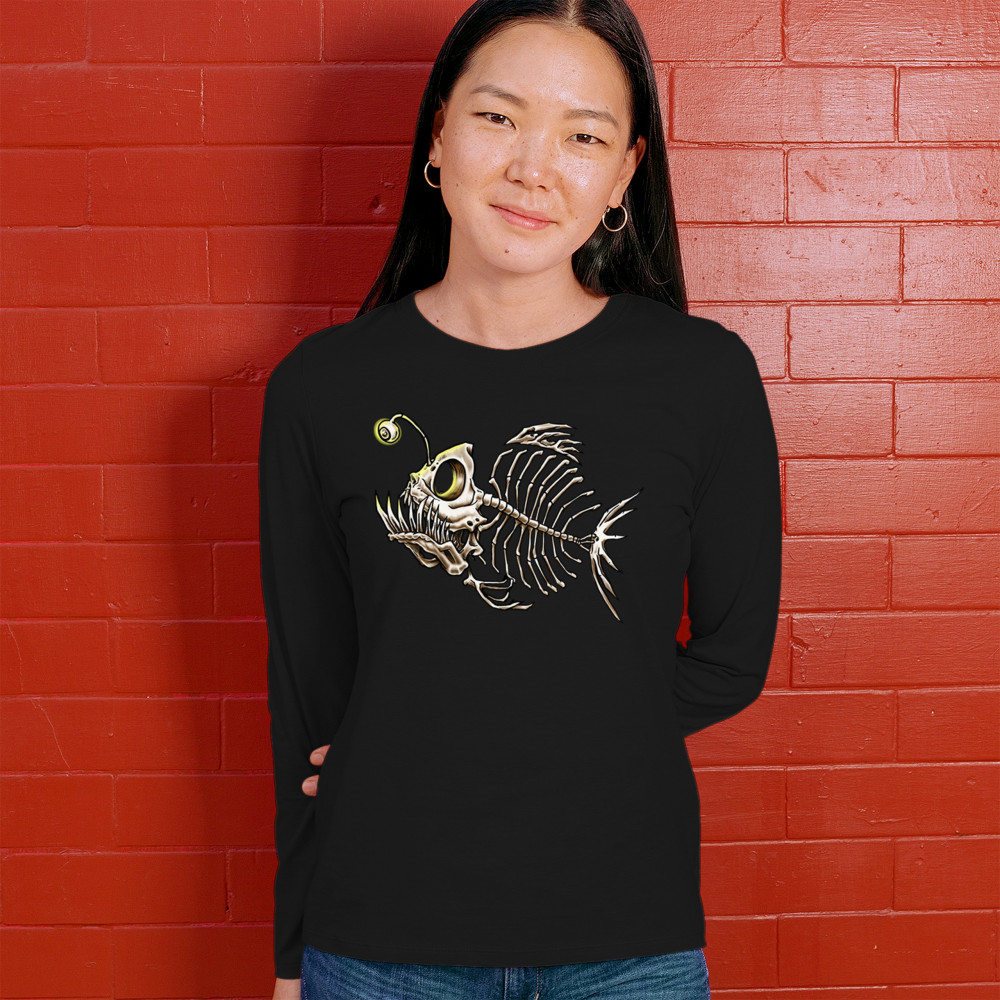 DEEP SEA ANGLER FISH SKELETON deep sea angler fish women's long sleeve t-shirt fishermen fishing lover gift black