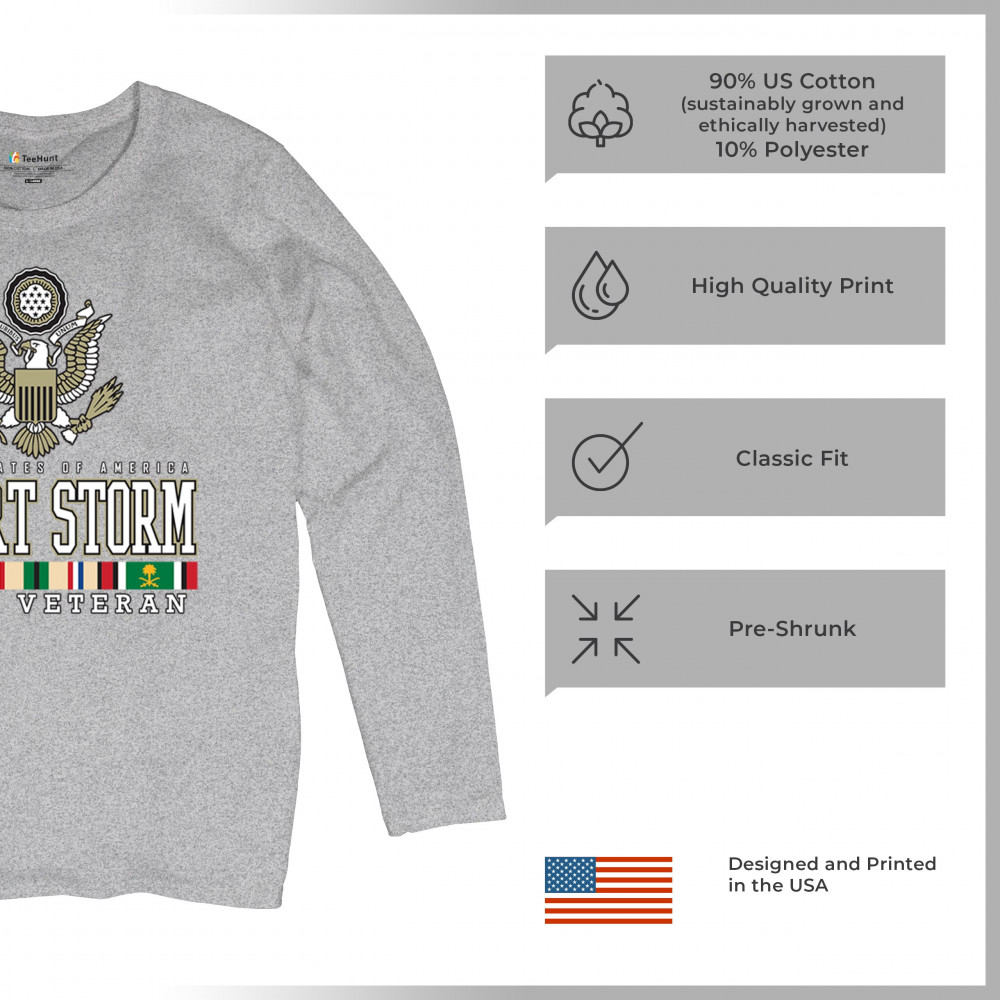 Commemorate Desert Storm with our proud veteran design, celebrating the enduring spirit and sacrifice of U.S. Army warriors and their dedication to duty.