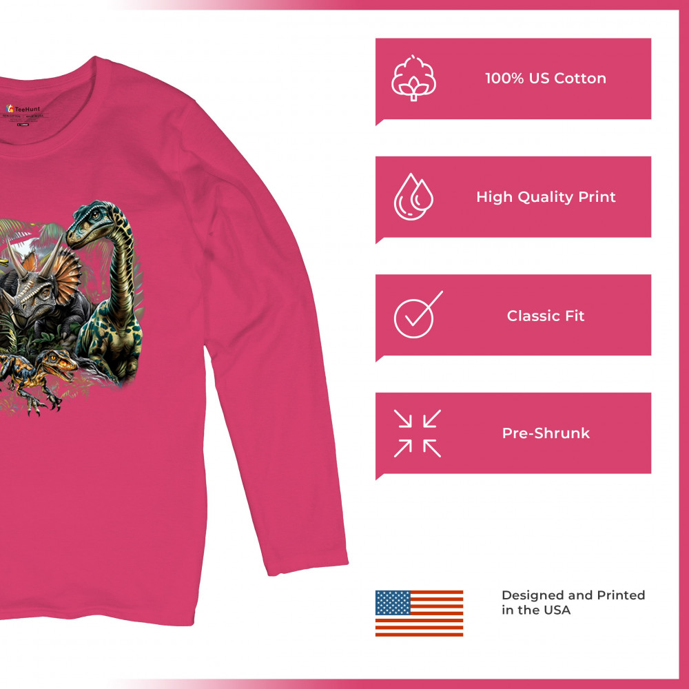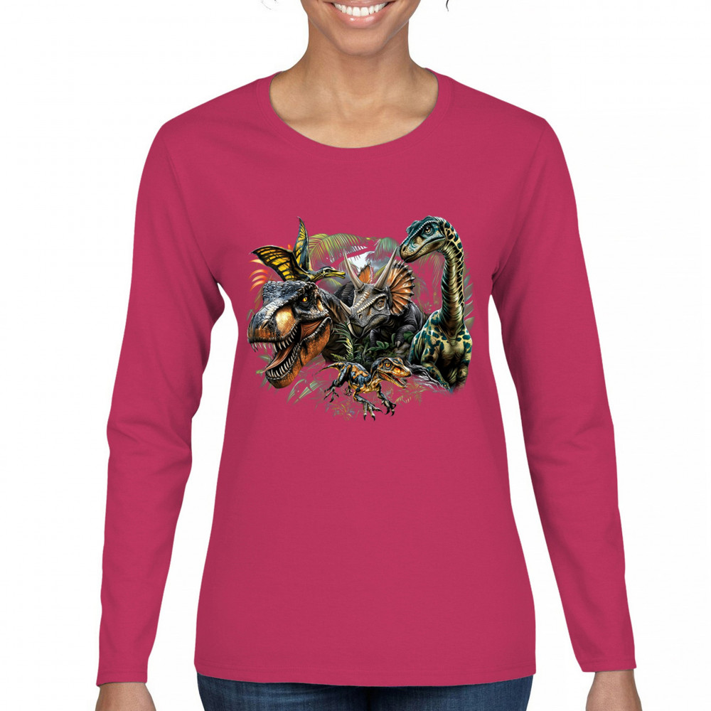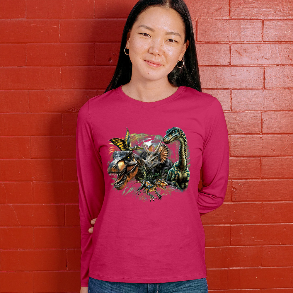 Get prehistoric with this electrifying design featuring a full dino squad in vibrant jungle detail. Includes t rex, triceratops, raptor, brachiosaurus, and pteranodon, all surrounded by tropical foliage. A perfect pick for dinosaur fans, fossil hunters, Jurassic birthday parties, or anyone who loves bold, wild, nature-themed art.