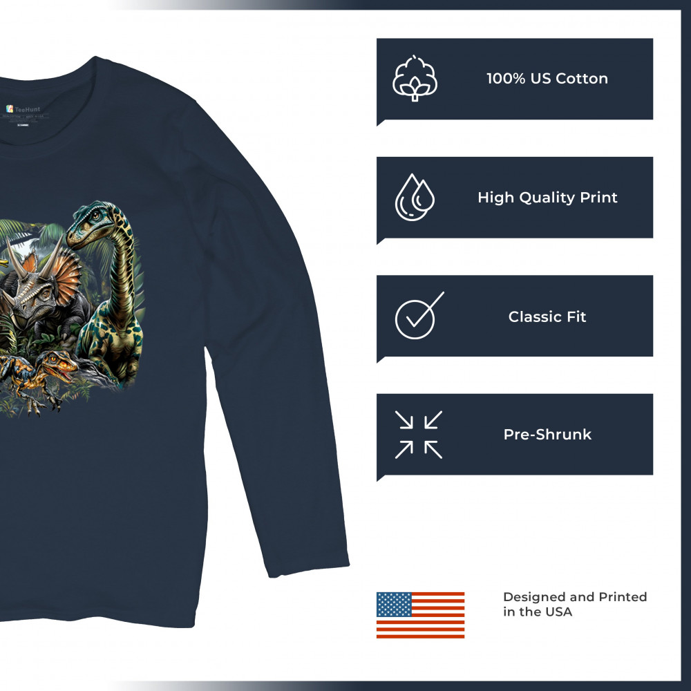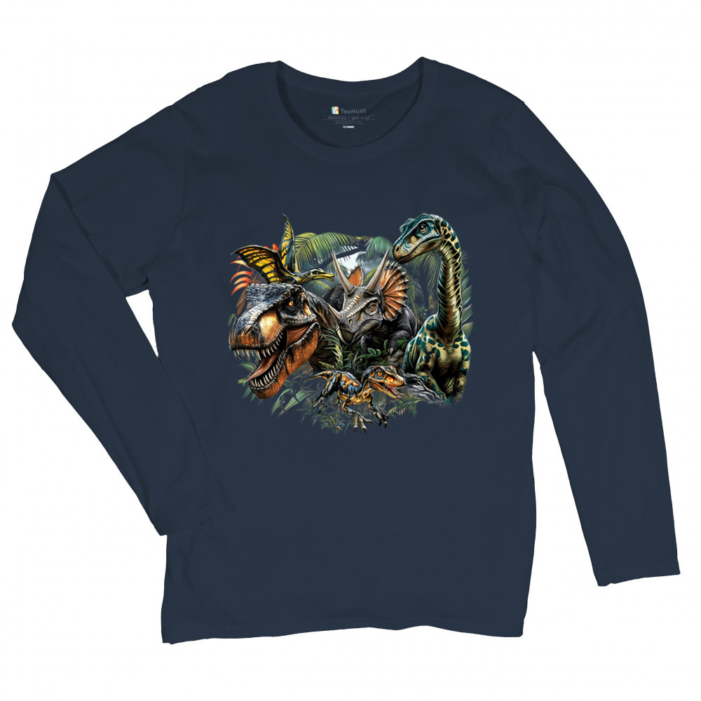 Get prehistoric with this electrifying design featuring a full dino squad in vibrant jungle detail. Includes t rex, triceratops, raptor, brachiosaurus, and pteranodon, all surrounded by tropical foliage. A perfect pick for dinosaur fans, fossil hunters, Jurassic birthday parties, or anyone who loves bold, wild, nature-themed art.