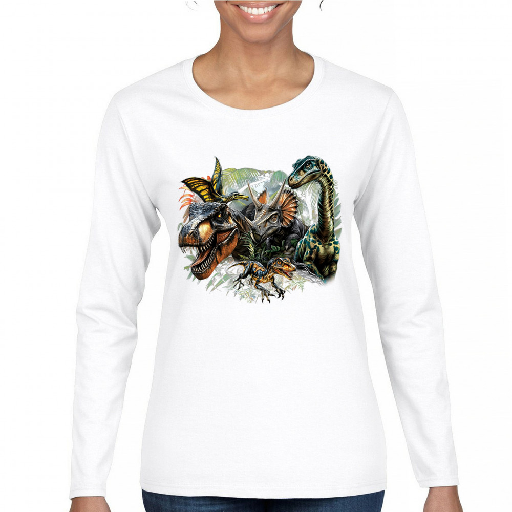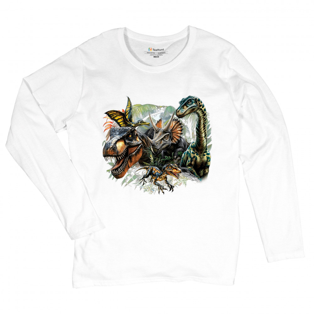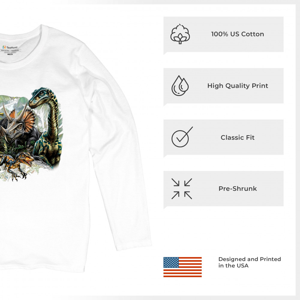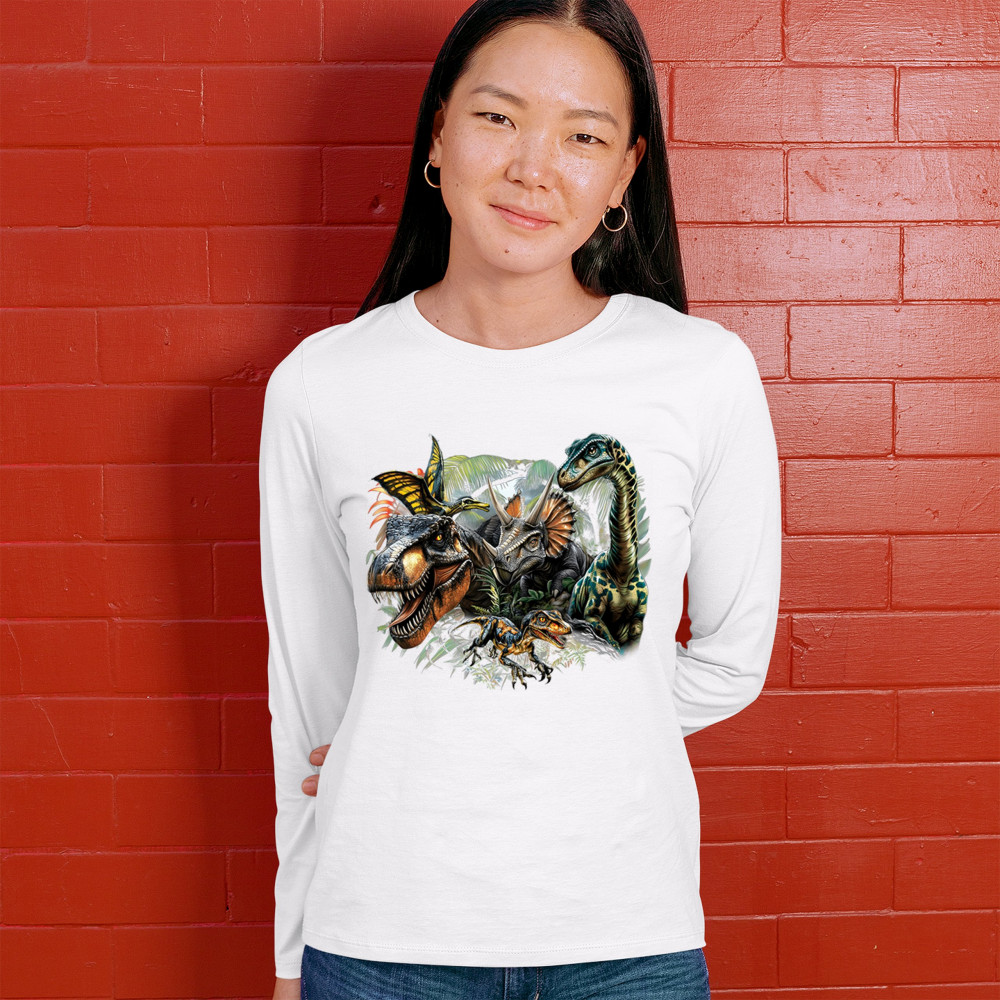 Get prehistoric with this electrifying design featuring a full dino squad in vibrant jungle detail. Includes t rex, triceratops, raptor, brachiosaurus, and pteranodon, all surrounded by tropical foliage. A perfect pick for dinosaur fans, fossil hunters, Jurassic birthday parties, or anyone who loves bold, wild, nature-themed art.