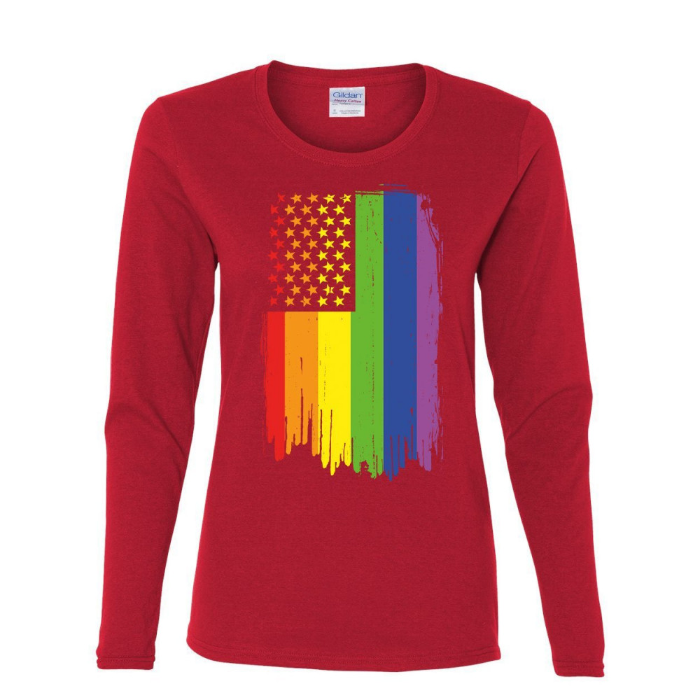 DISTRESSED GAY PRIDE RAINBOW FLAG long sleeve t-shirt lgbtq love wins red
