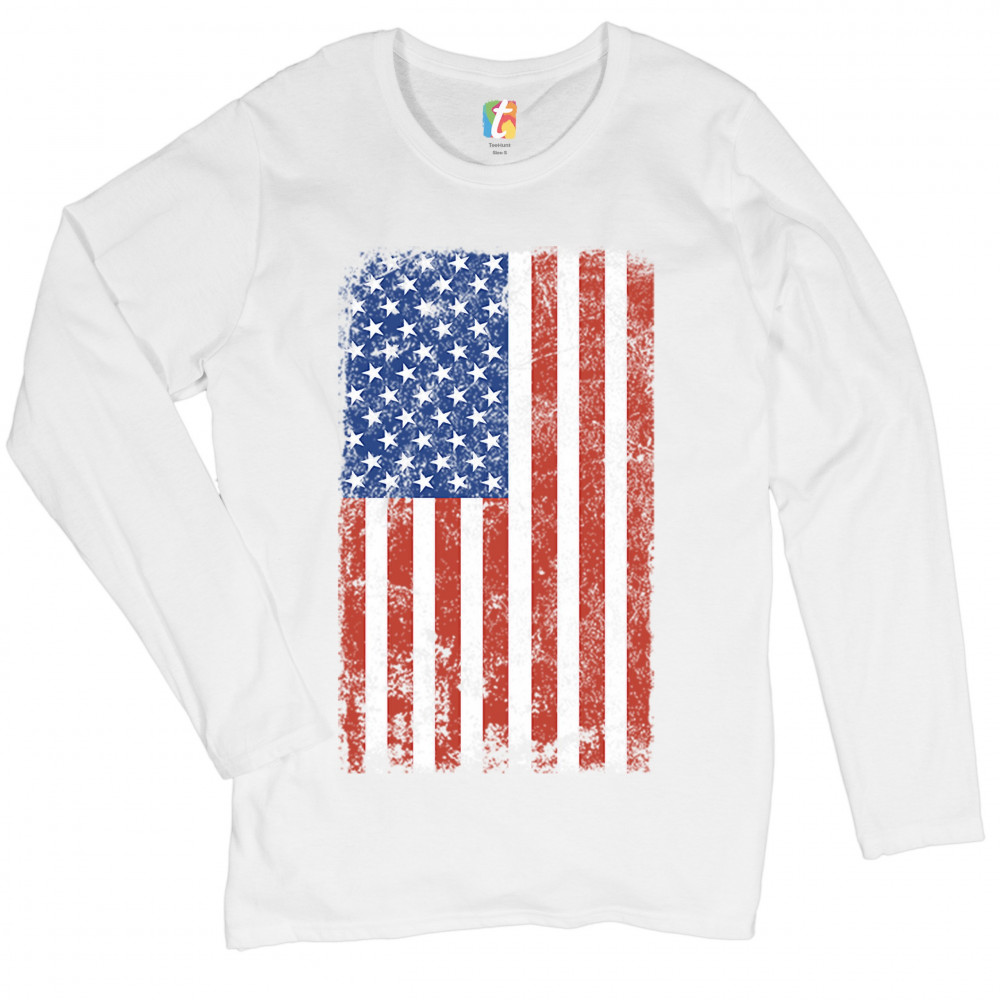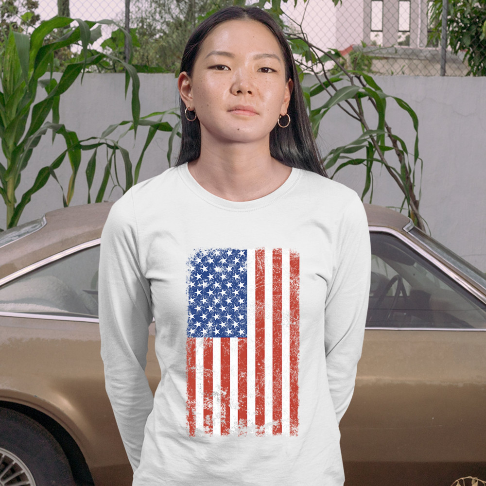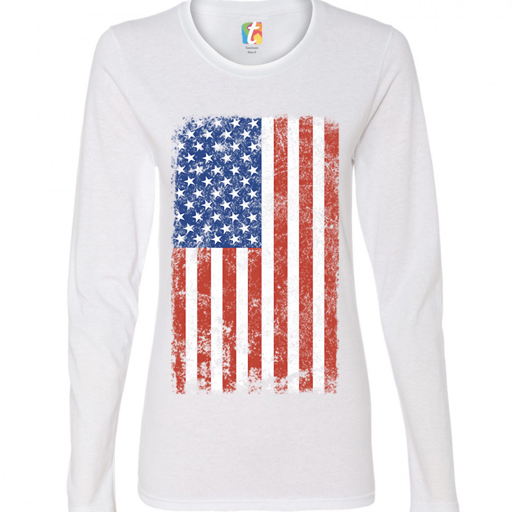 DISTRESSED GRUNGE AMERICAN FLAG women's long sleeve t-shirt vintage 4th of july white