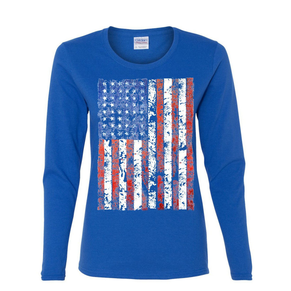 DISTRESSED US FLAG long sleeve t-shirt american flag royal blue