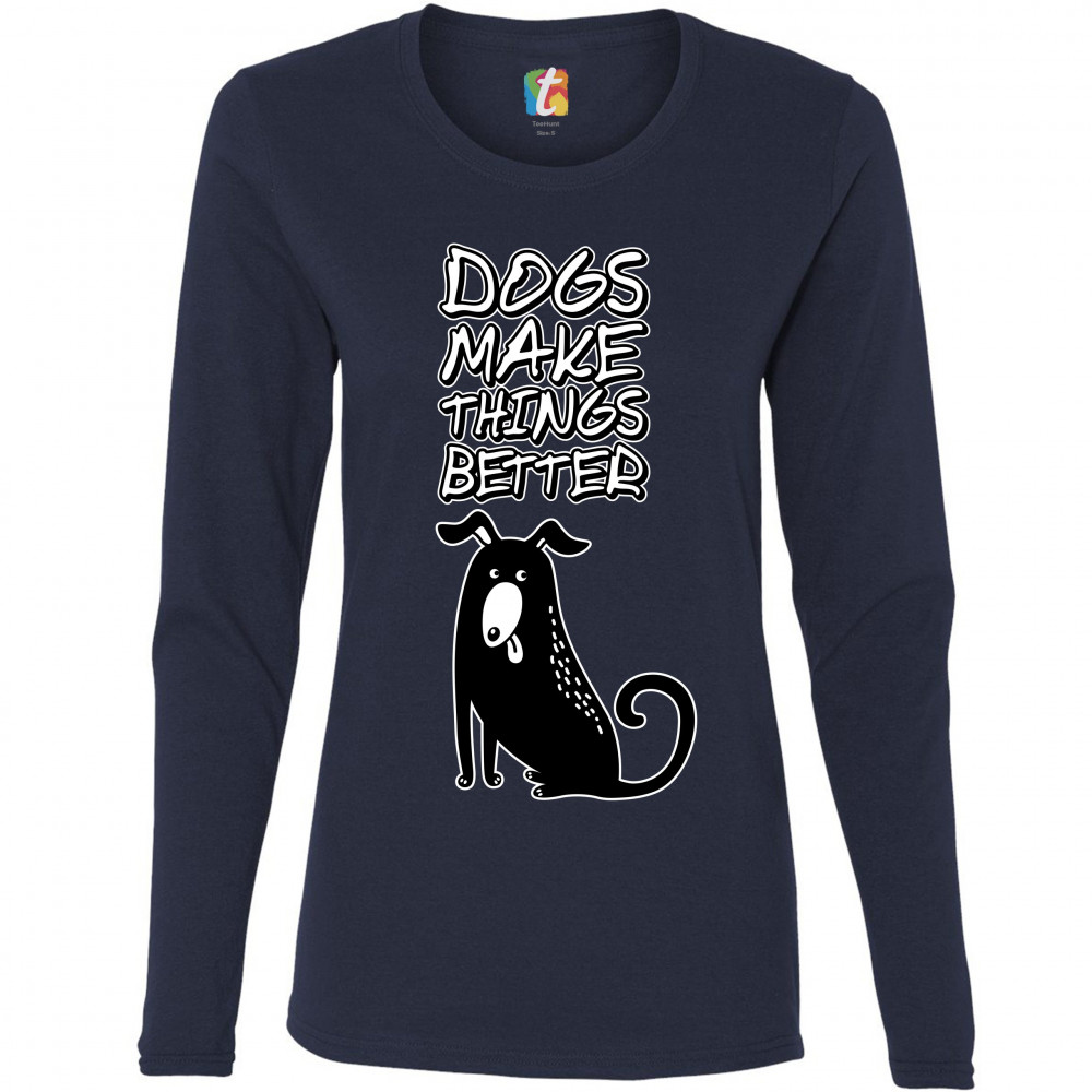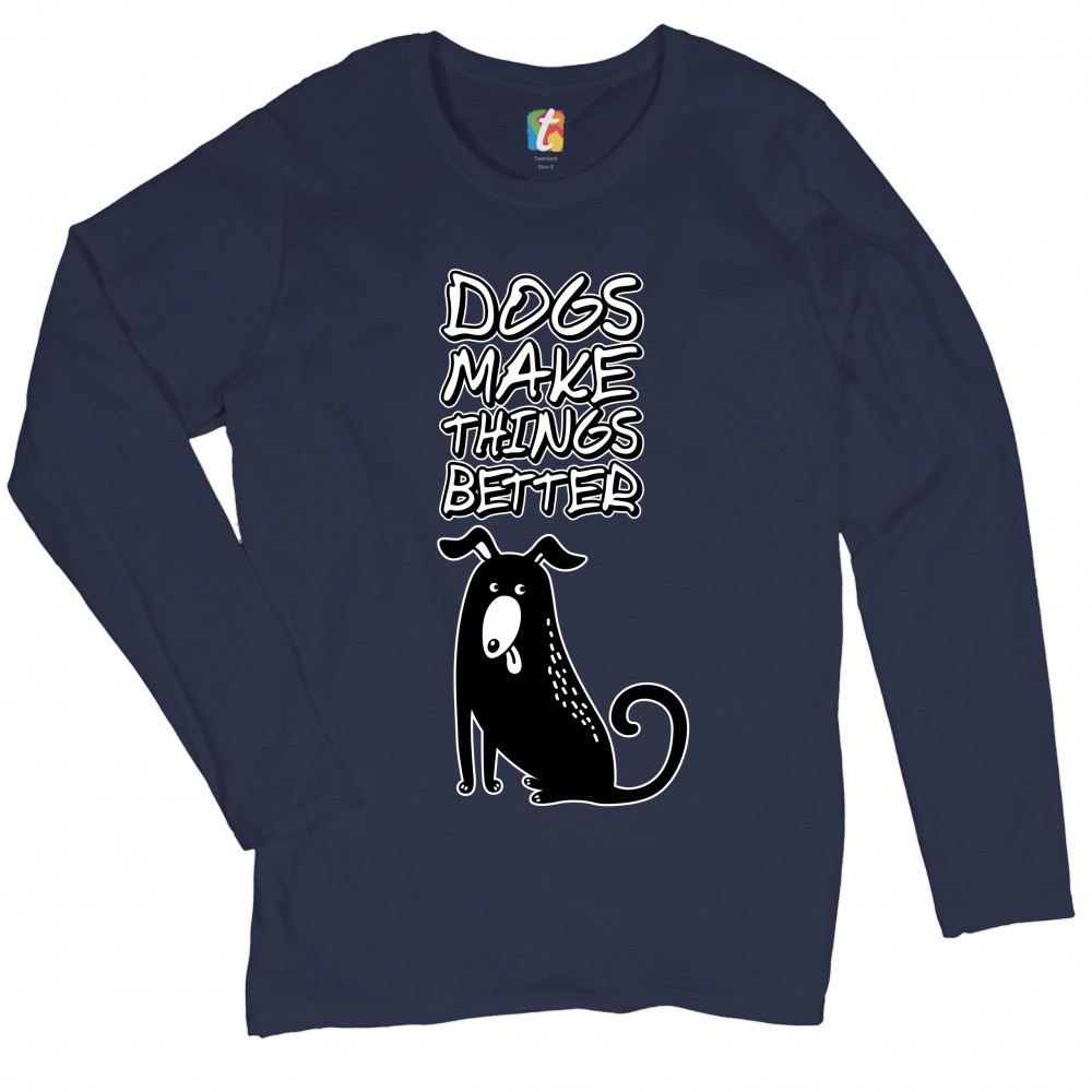 DOGS MAKE THINGS BETTER women's long sleeve t-shirt pet owner i love my dog navy blue