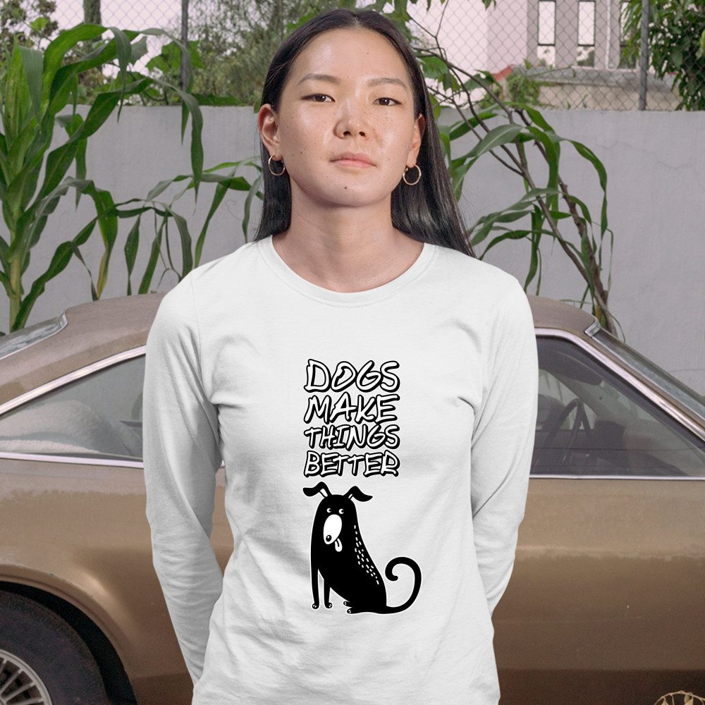 DOGS MAKE THINGS BETTER women's long sleeve t-shirt pet owner i love my dog white