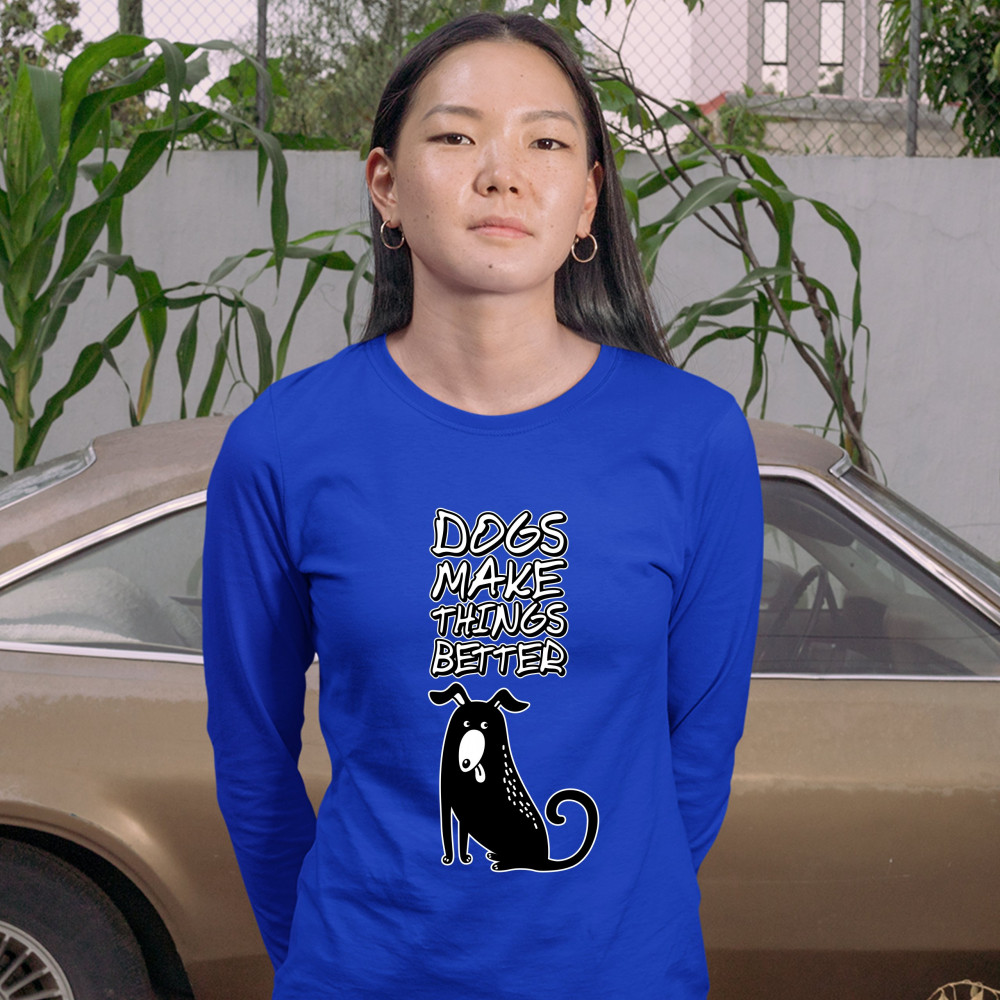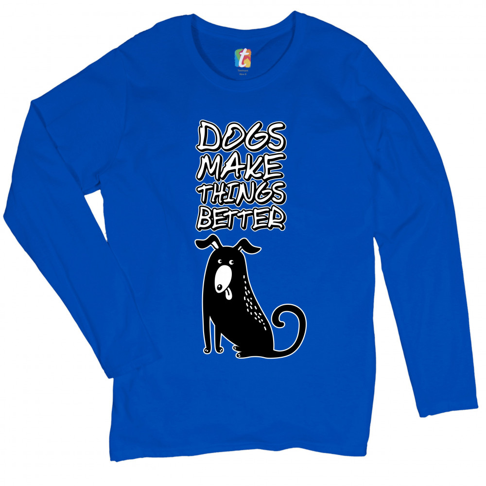 DOGS MAKE THINGS BETTER women's long sleeve t-shirt pet owner i love my dog royal blue