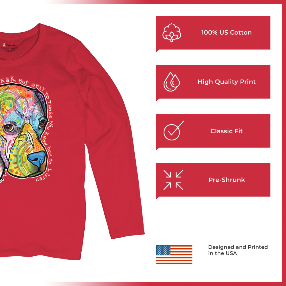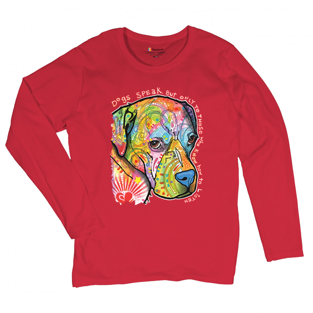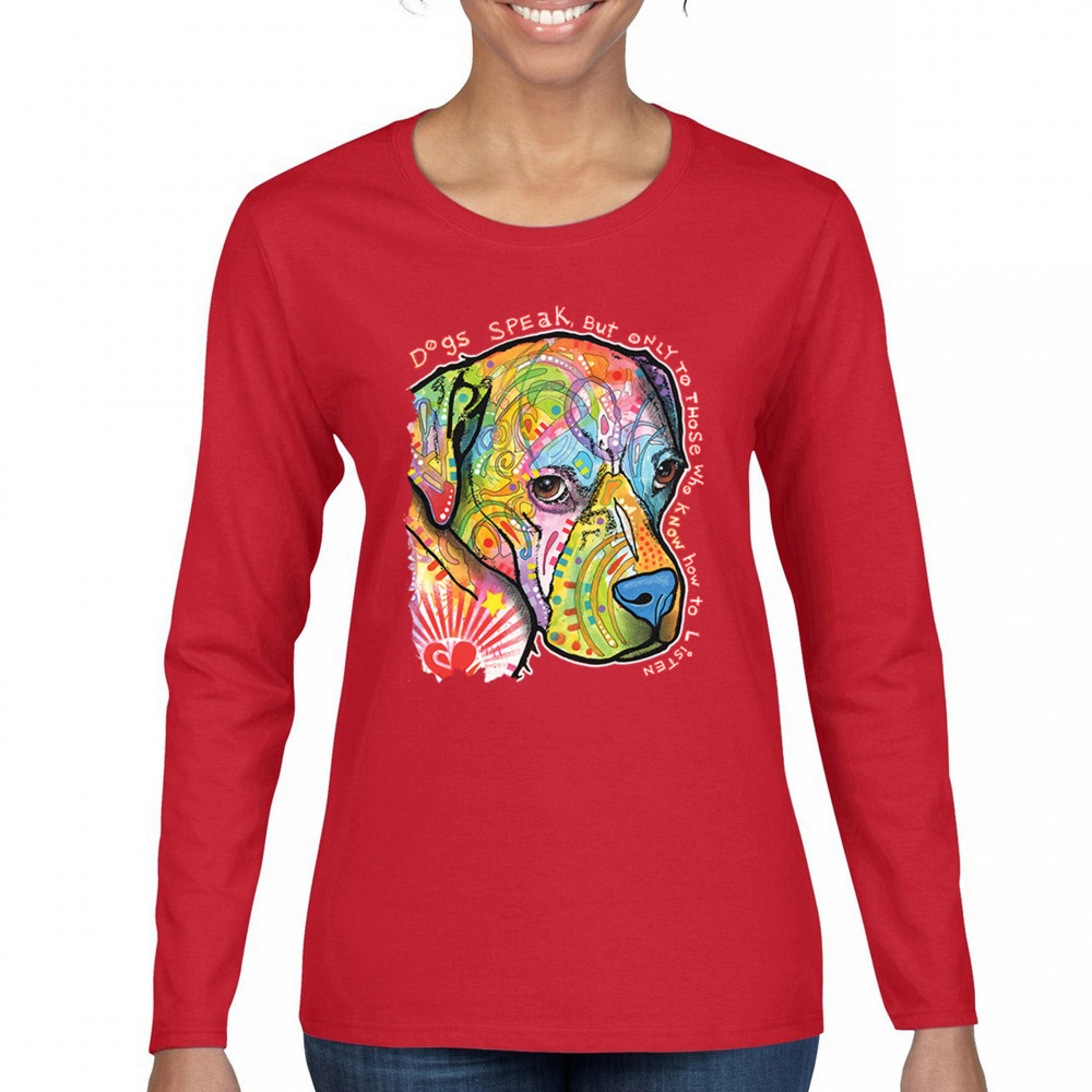 DOGS SPEAK TO THOSE WHO LISTEN women's long sleeve t-shirt dean russo neon pet red