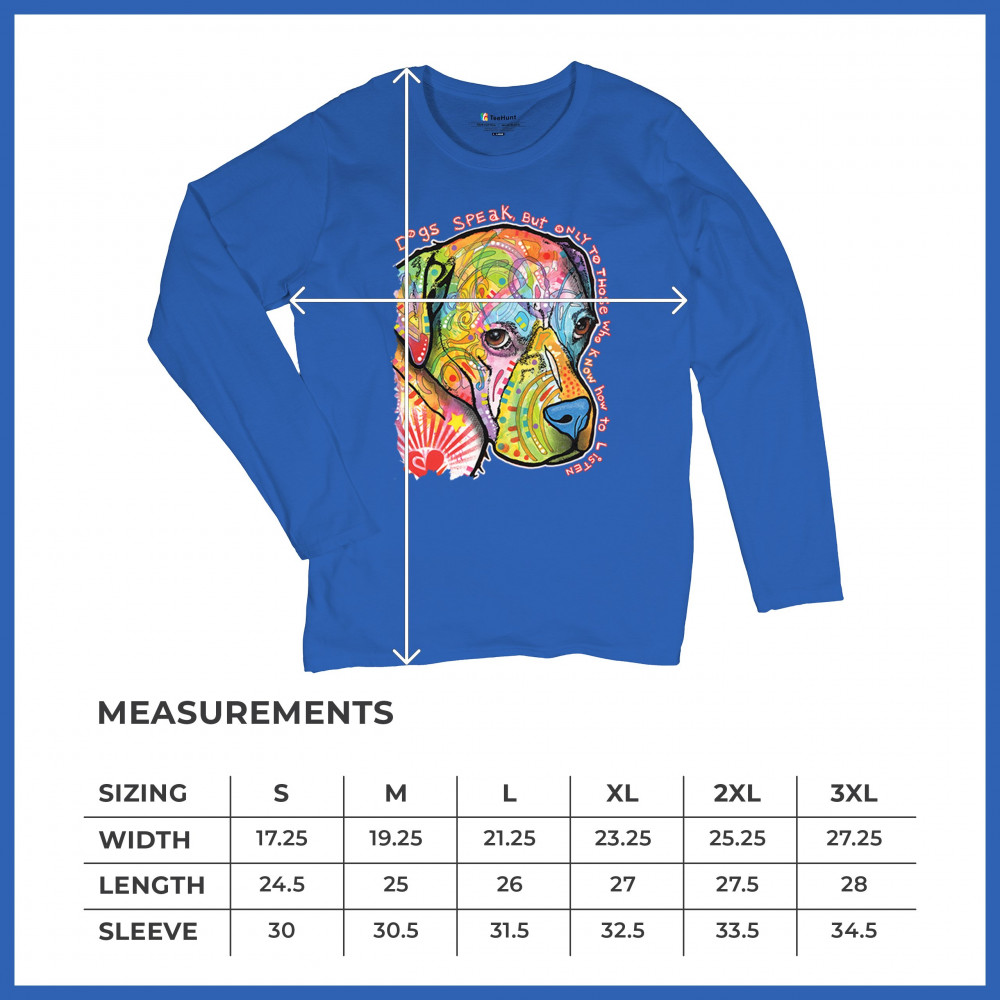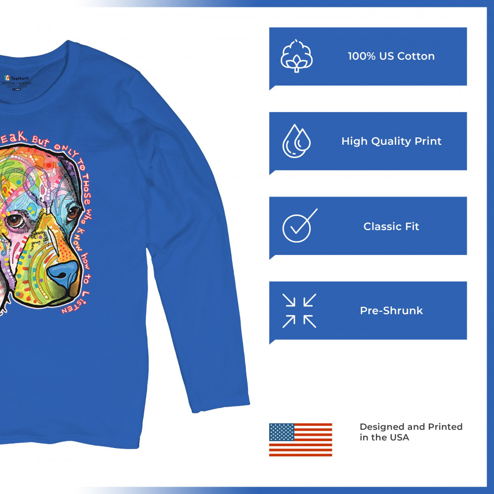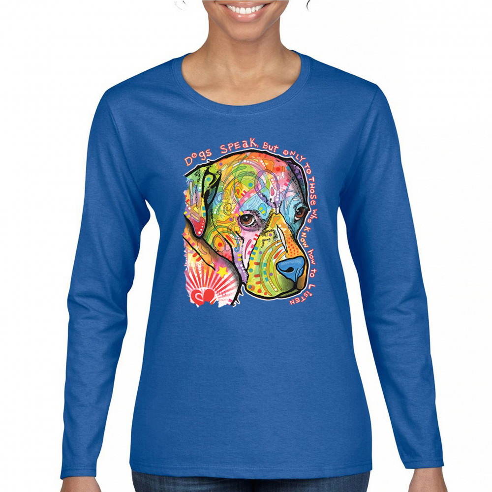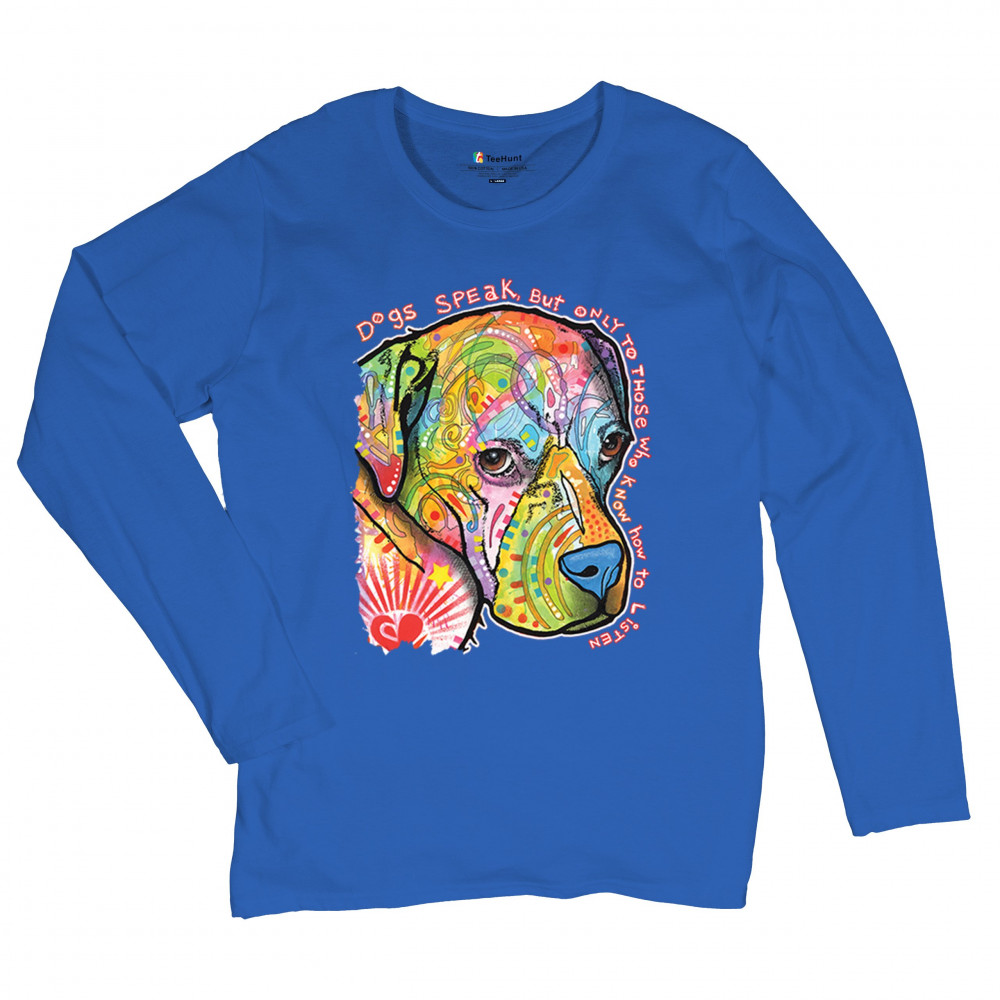 DOGS SPEAK TO THOSE WHO LISTEN women's long sleeve t-shirt dean russo neon pet royal blue