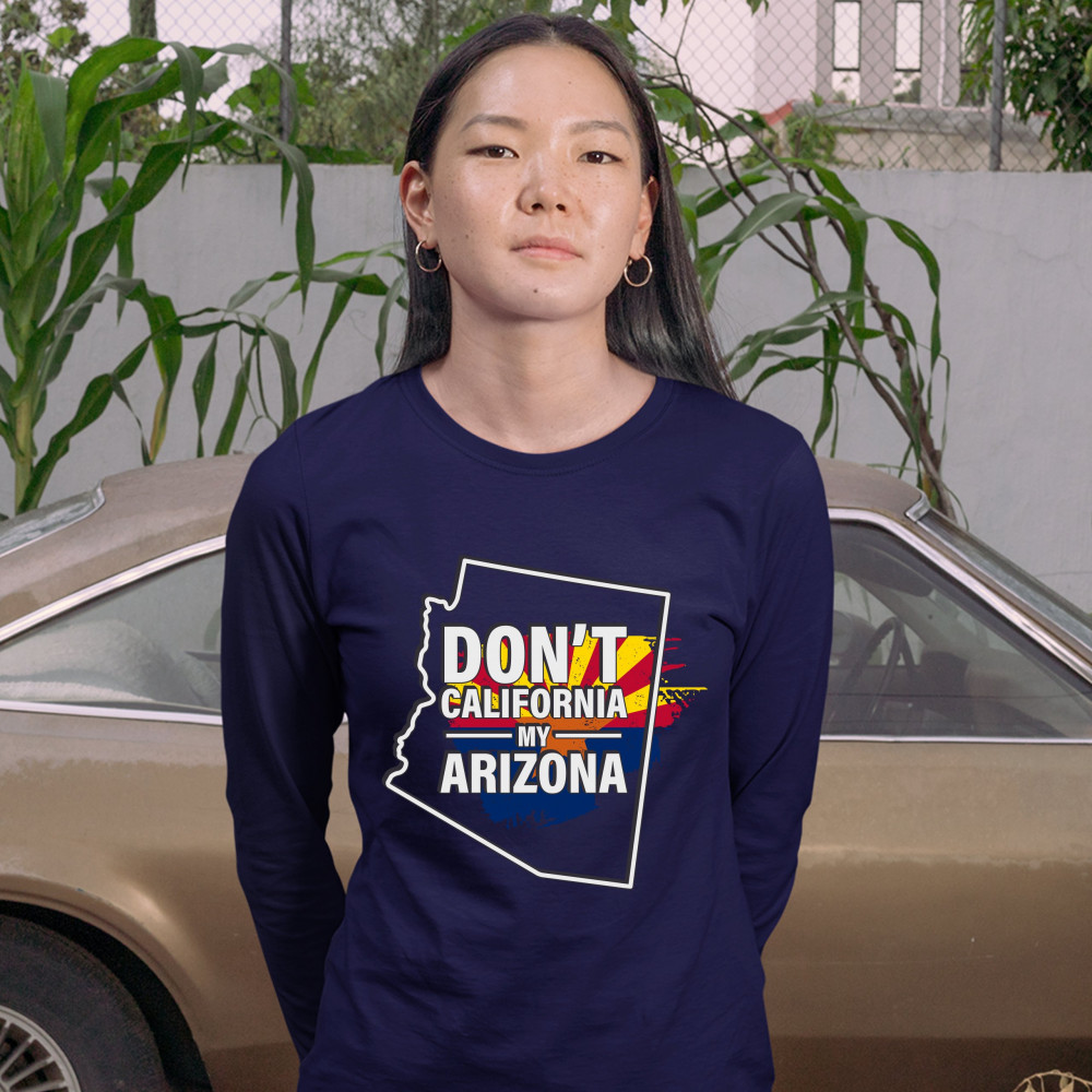 DON'T CALIFORNIA MY ARIZONA women's long sleeve t-shirt southern attitude funny navy blue