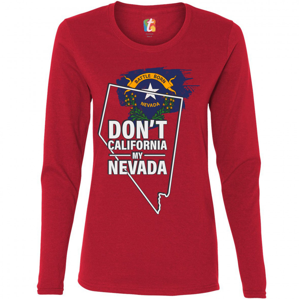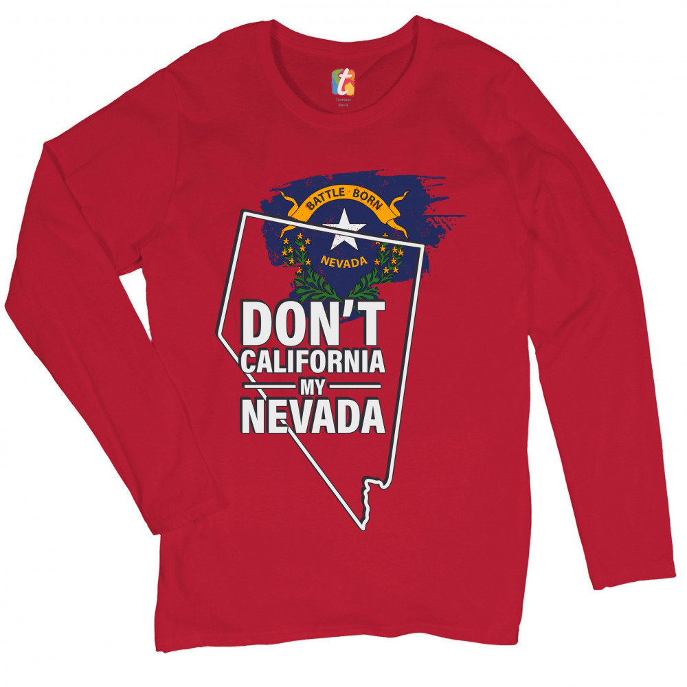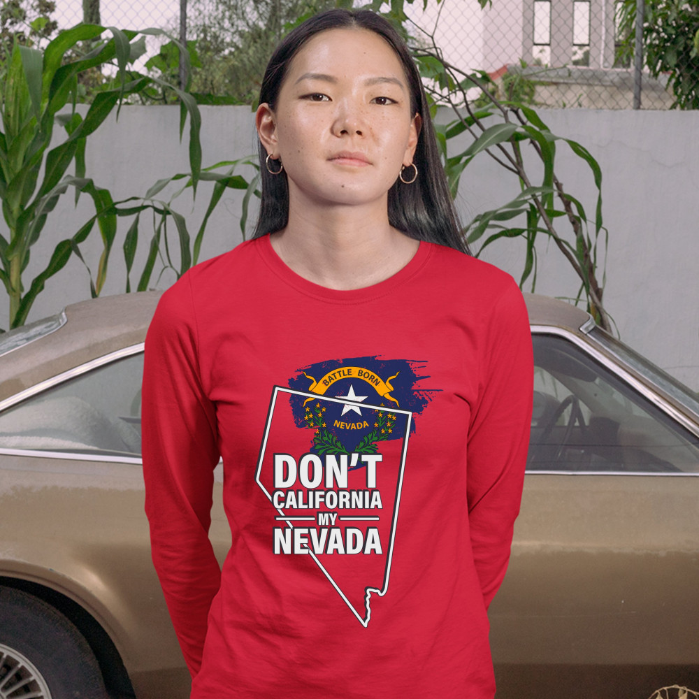 A political print featuring a silhouette of the state of Nevada and it's flag on the inside. The print says: "Don't California my Nevada". A great choice for anyone who is concerned for a huge number of Californians moving to their beloved state.