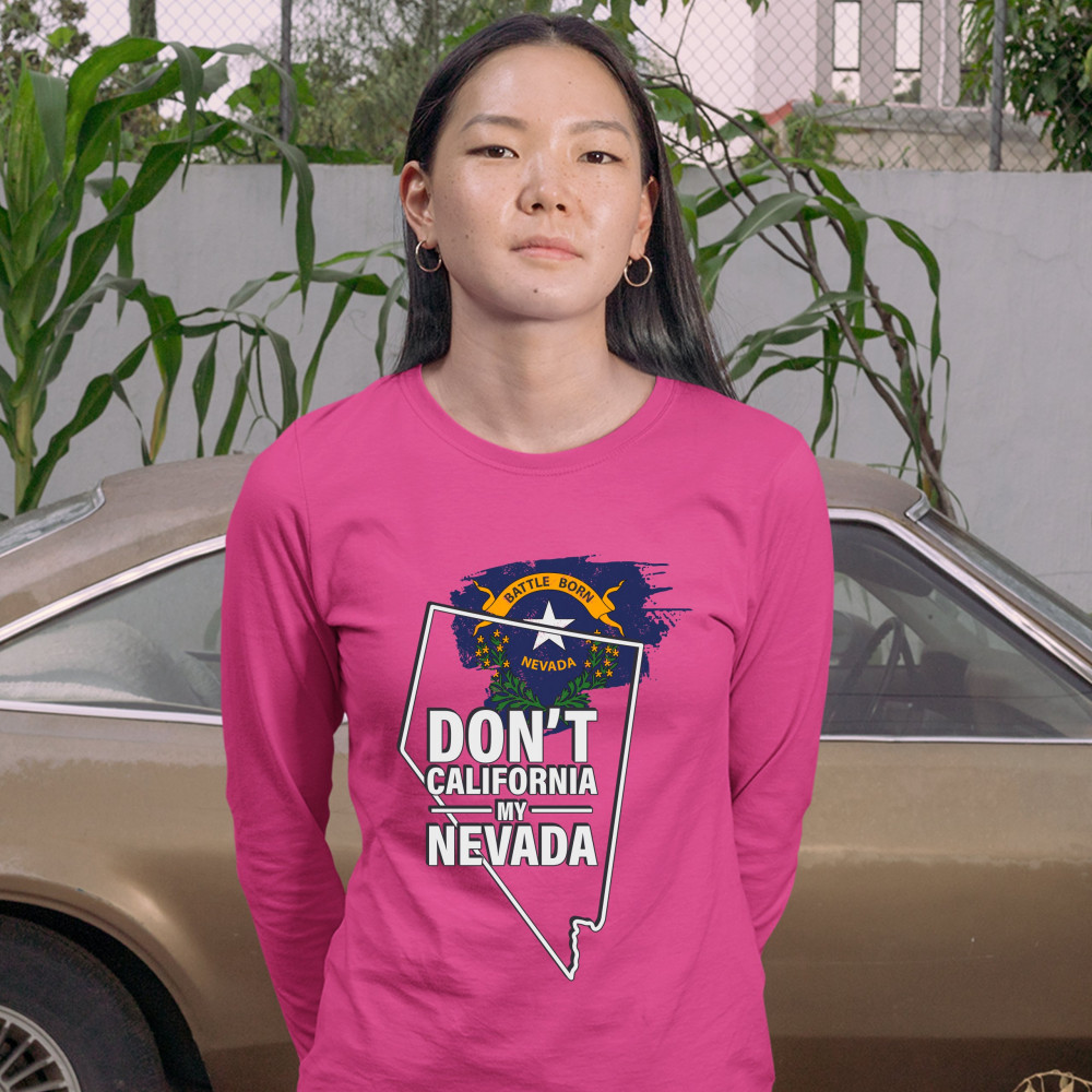 DON'T CALIFORNIA MY NEVADA women's long sleeve t-shirt the battle born state pink