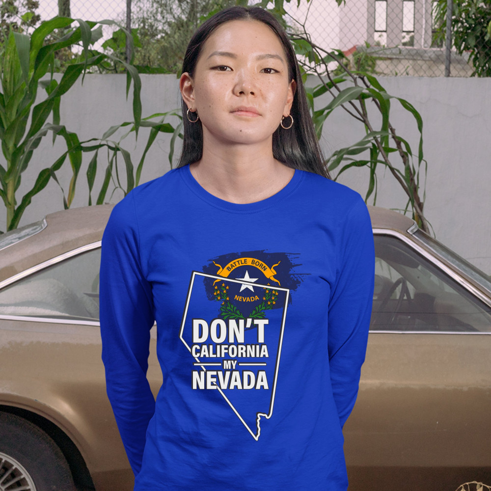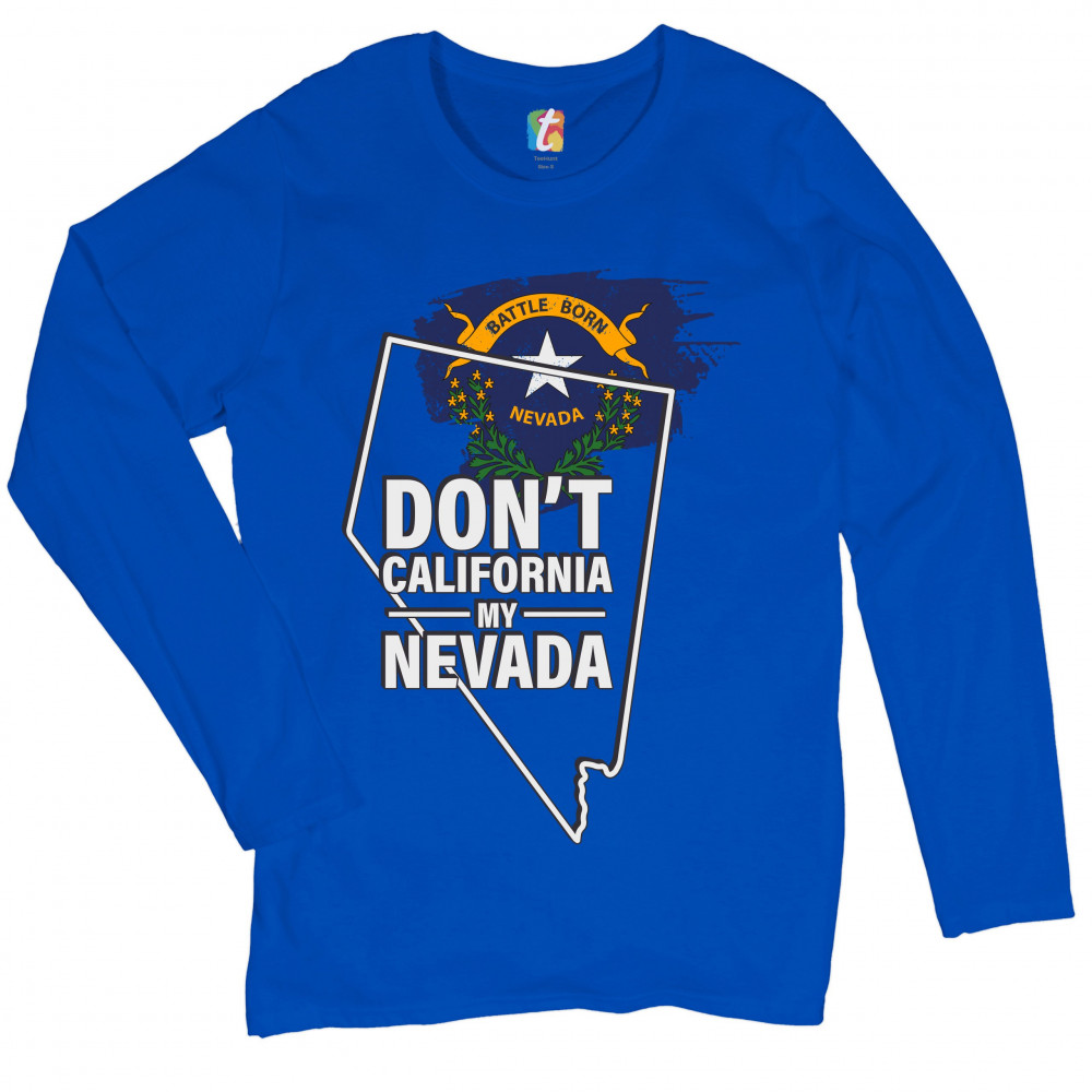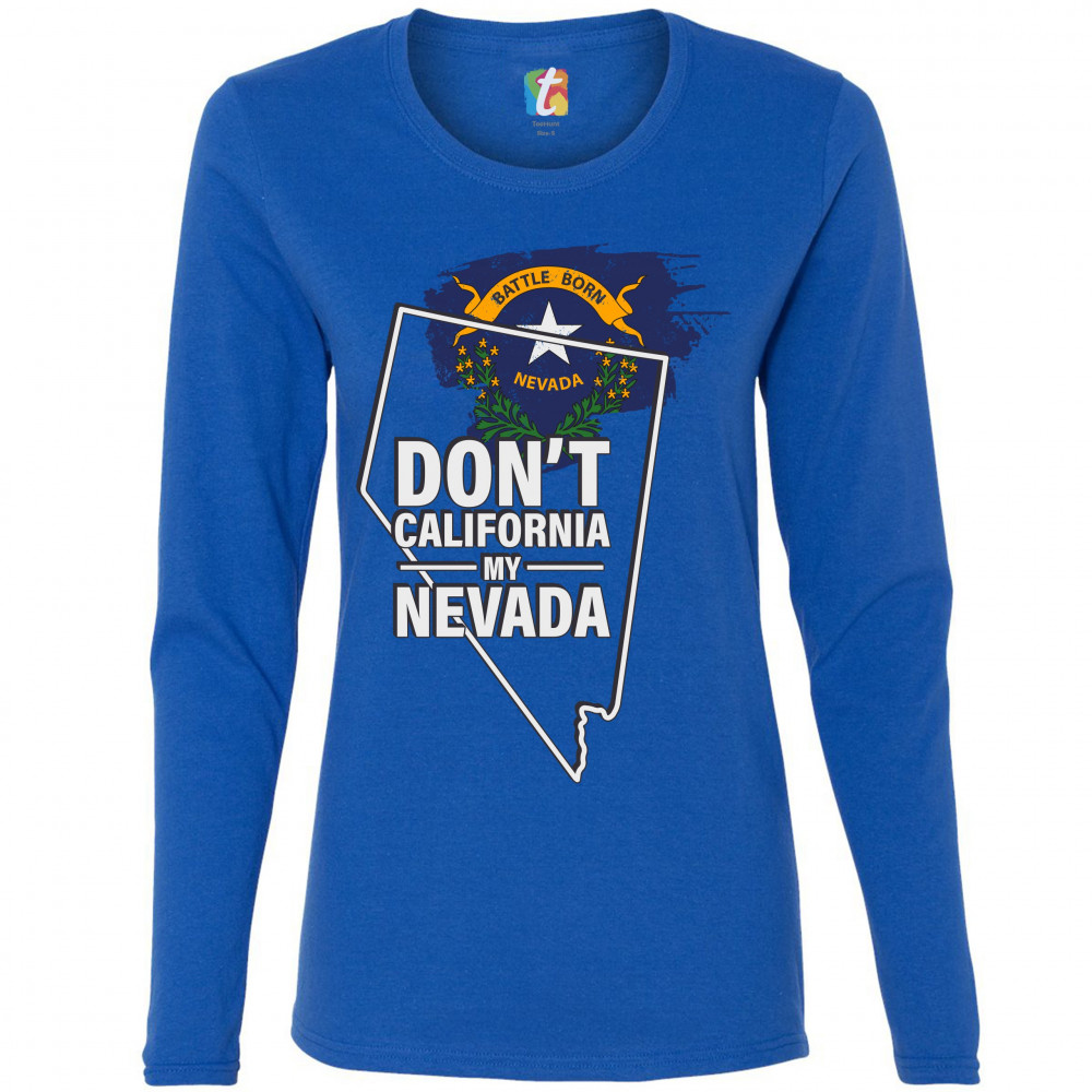 DON'T CALIFORNIA MY NEVADA women's long sleeve t-shirt the battle born state royal blue