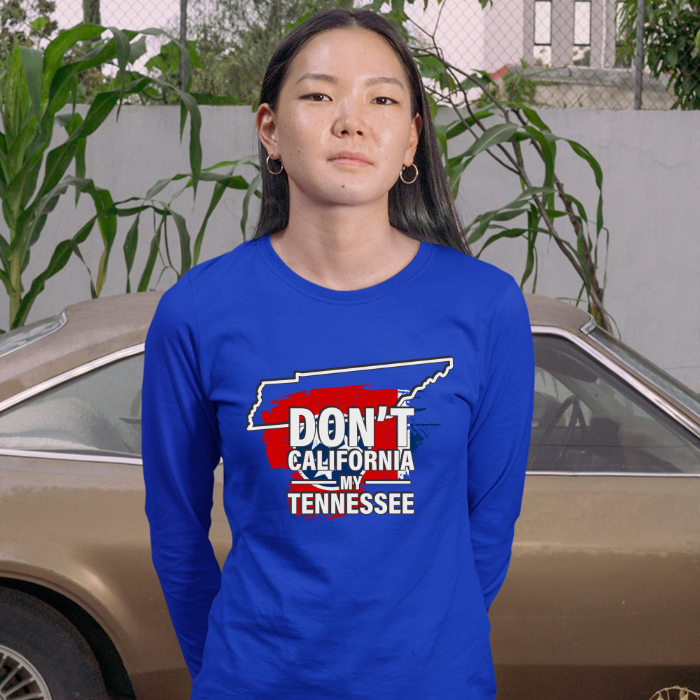 DON'T CALIFORNIA MY TENNESSEE women's long sleeve t-shirt funny conservative royal blue
