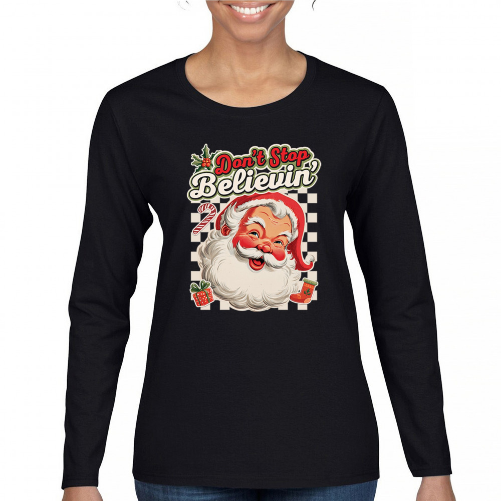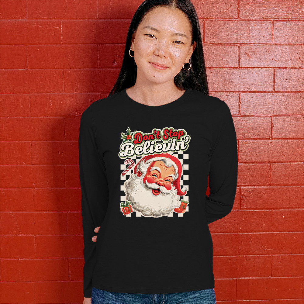 Spread holiday cheer with this “Don’t Stop Believing†Santa Claus shirt that blends classic Christmas spirit with cozy winter charm. Perfect for festive parties, family gatherings, or relaxing by the fire, this design captures Jingle Bells joy, Merry Xmas fun, Santa Claus magic, Reindeer delight, Rudolph glow, Snowman charm, and Christmas tree style for the perfect seasonal outfit.