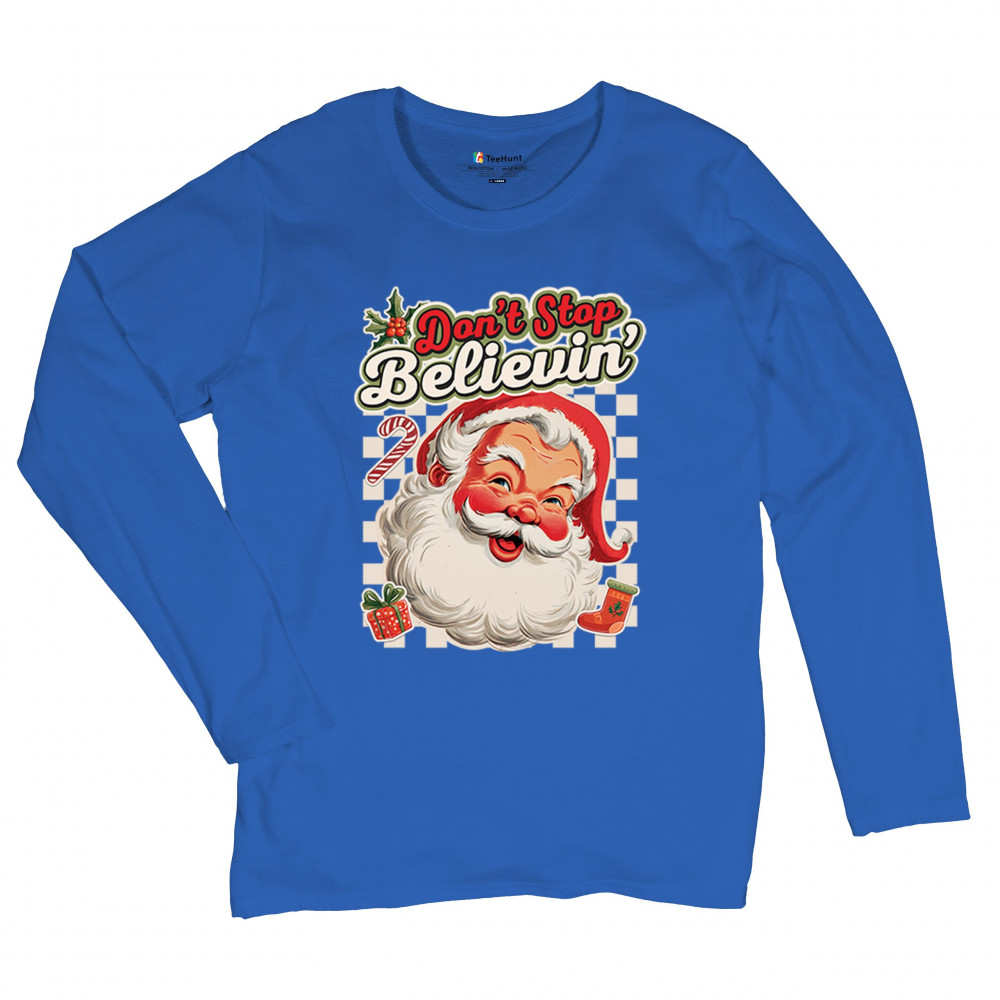 Spread holiday cheer with this “Don’t Stop Believing†Santa Claus shirt that blends classic Christmas spirit with cozy winter charm. Perfect for festive parties, family gatherings, or relaxing by the fire, this design captures Jingle Bells joy, Merry Xmas fun, Santa Claus magic, Reindeer delight, Rudolph glow, Snowman charm, and Christmas tree style for the perfect seasonal outfit.