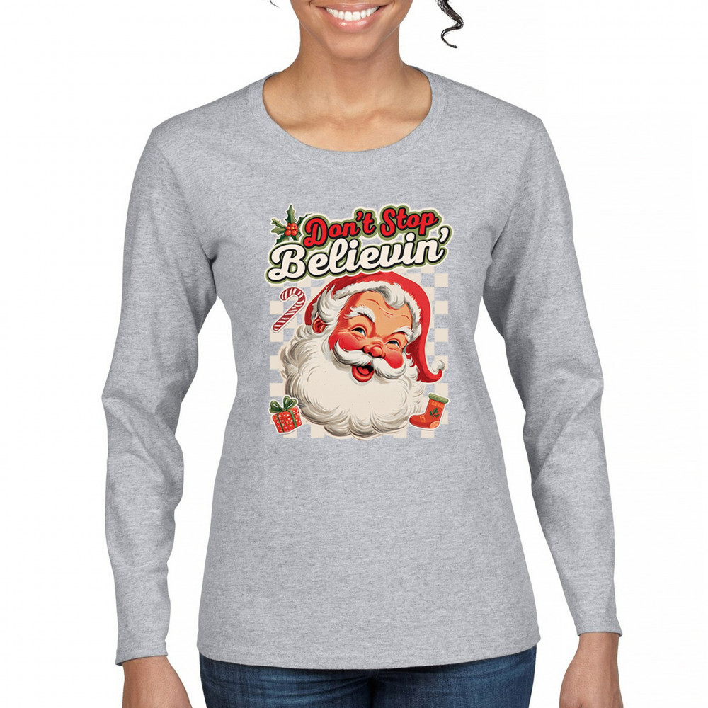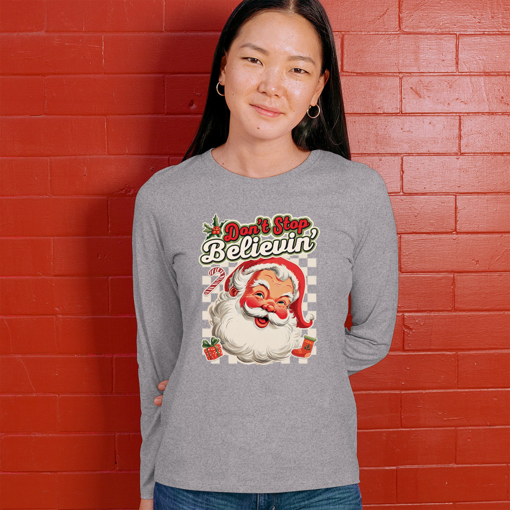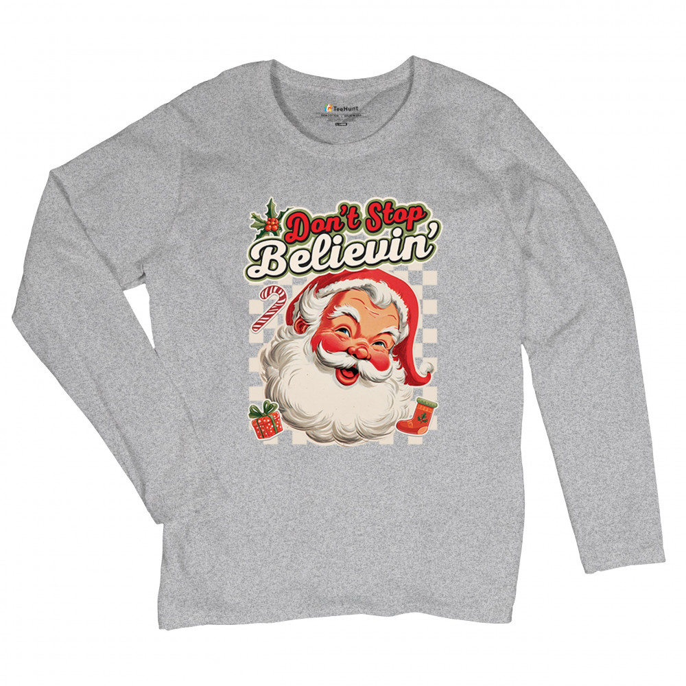 Spread holiday cheer with this “Don’t Stop Believing†Santa Claus shirt that blends classic Christmas spirit with cozy winter charm. Perfect for festive parties, family gatherings, or relaxing by the fire, this design captures Jingle Bells joy, Merry Xmas fun, Santa Claus magic, Reindeer delight, Rudolph glow, Snowman charm, and Christmas tree style for the perfect seasonal outfit.