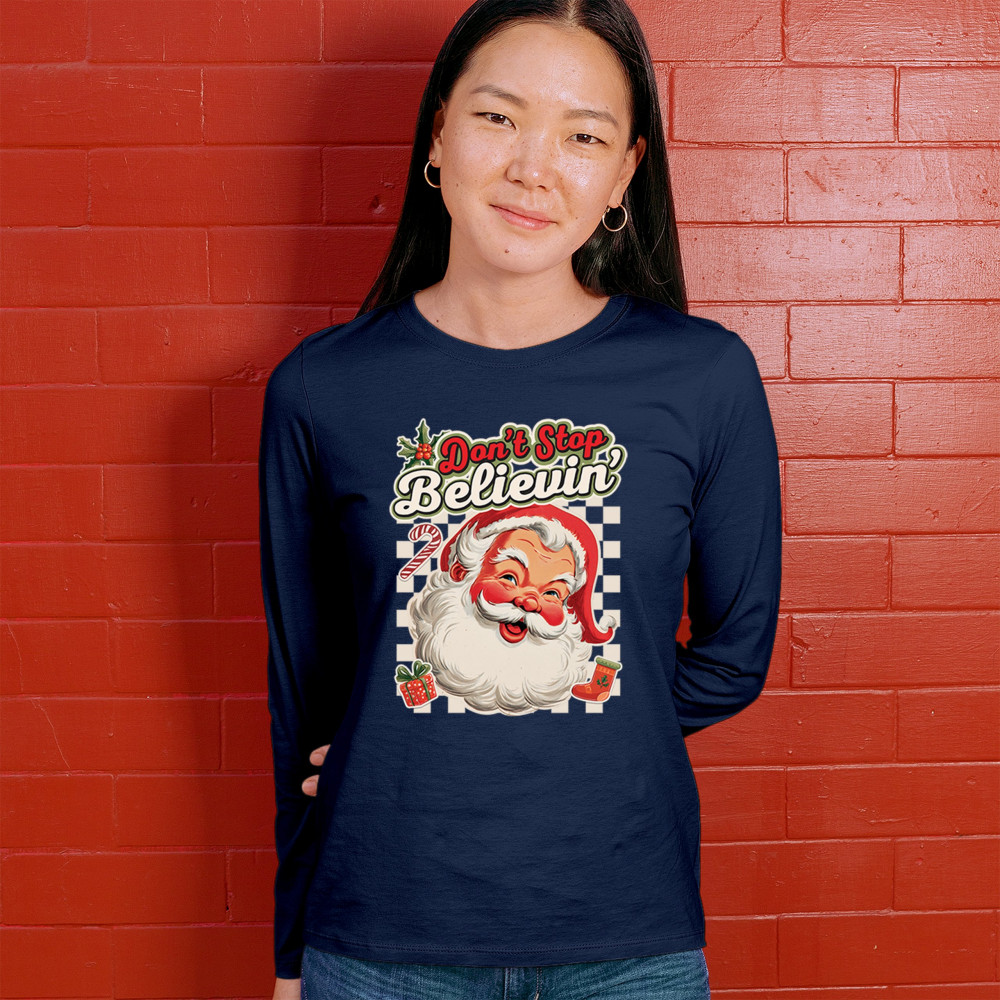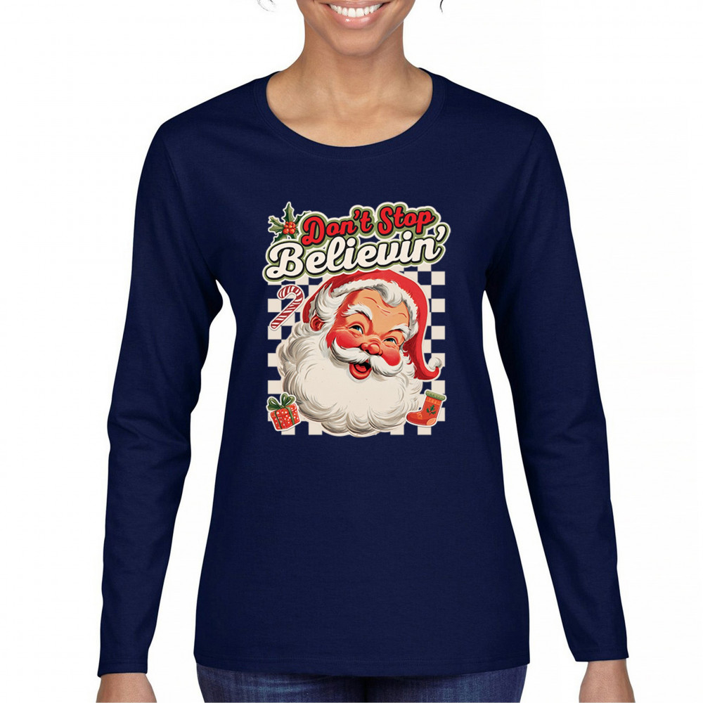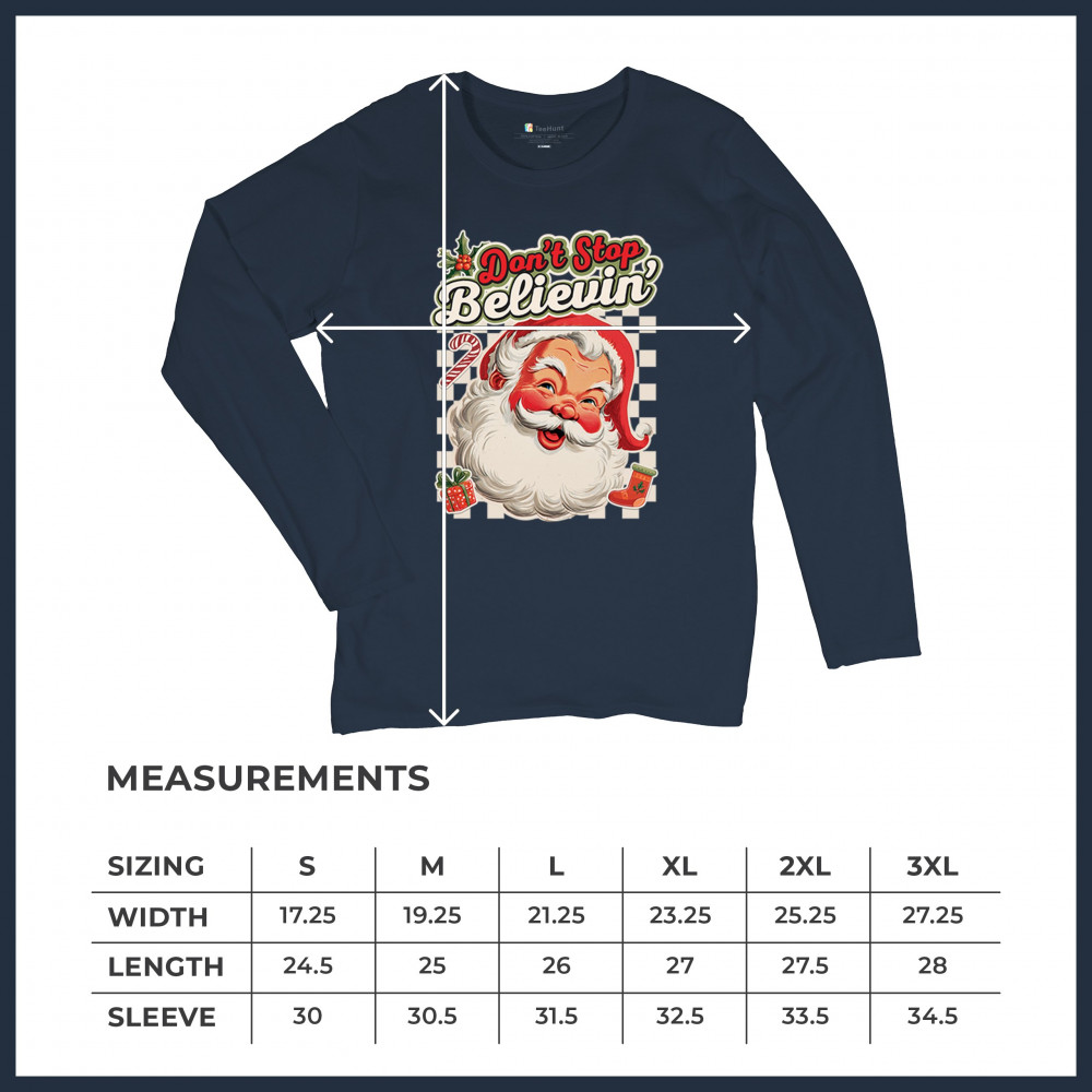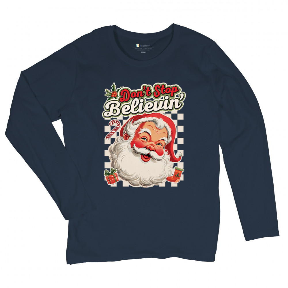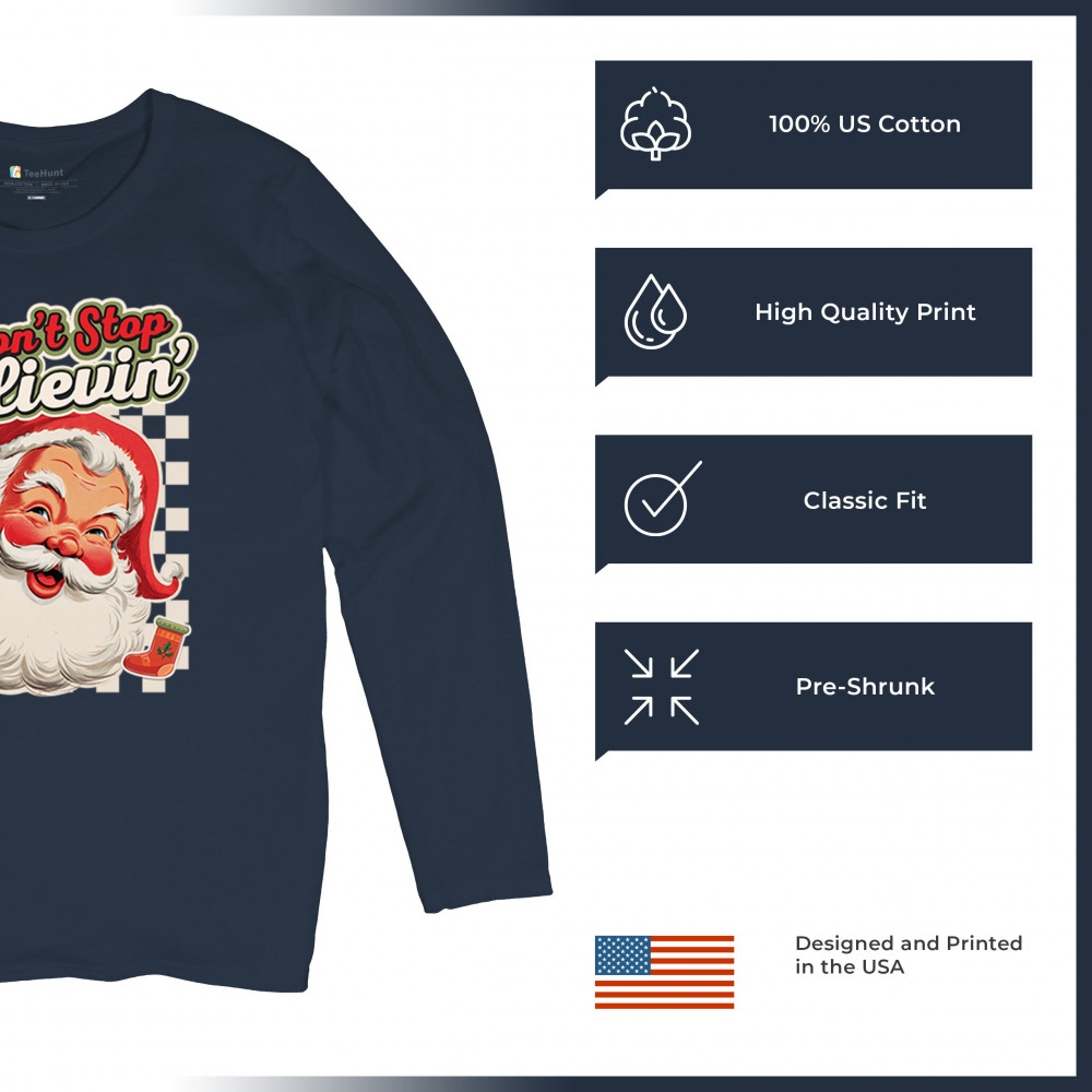 Spread holiday cheer with this “Don’t Stop Believing†Santa Claus shirt that blends classic Christmas spirit with cozy winter charm. Perfect for festive parties, family gatherings, or relaxing by the fire, this design captures Jingle Bells joy, Merry Xmas fun, Santa Claus magic, Reindeer delight, Rudolph glow, Snowman charm, and Christmas tree style for the perfect seasonal outfit.