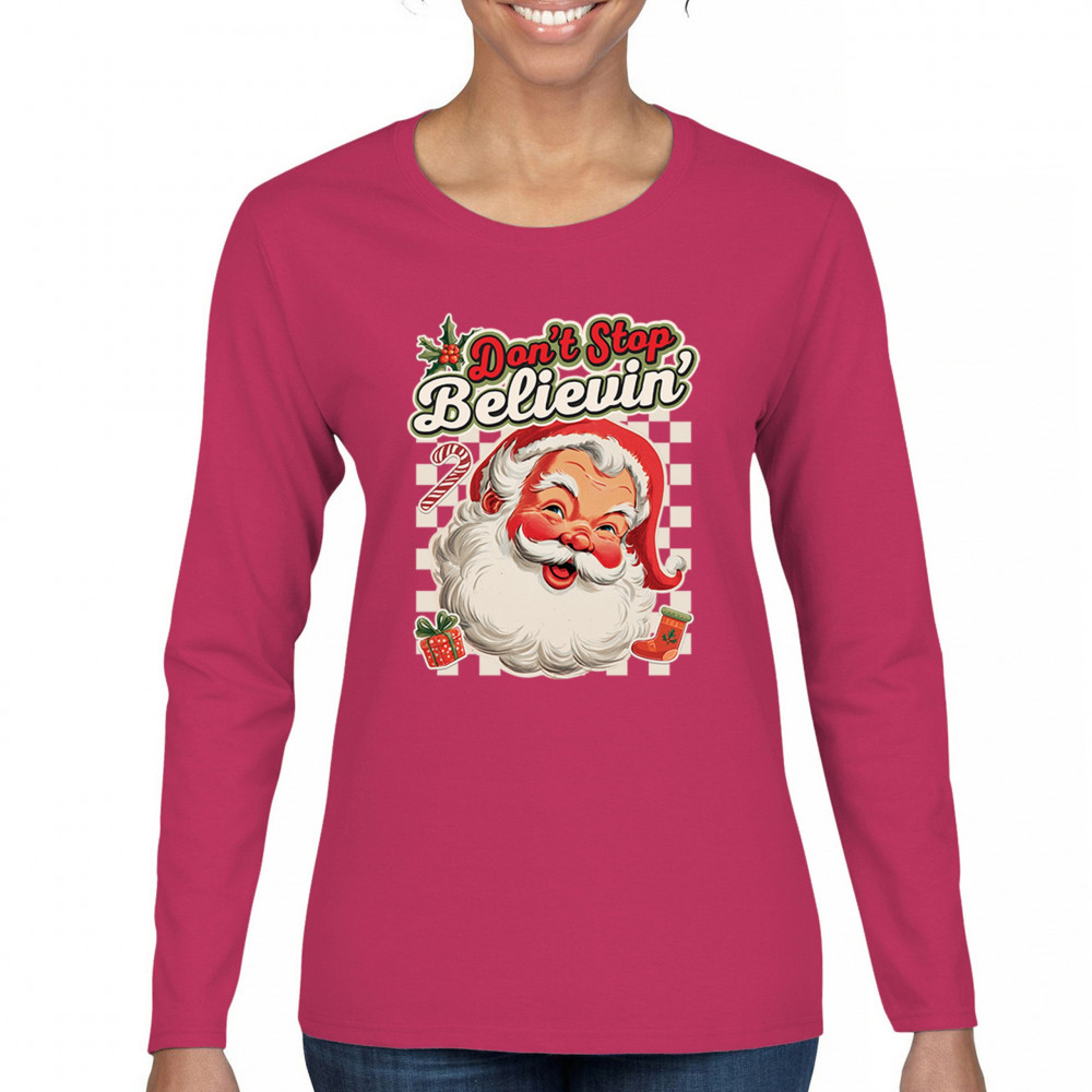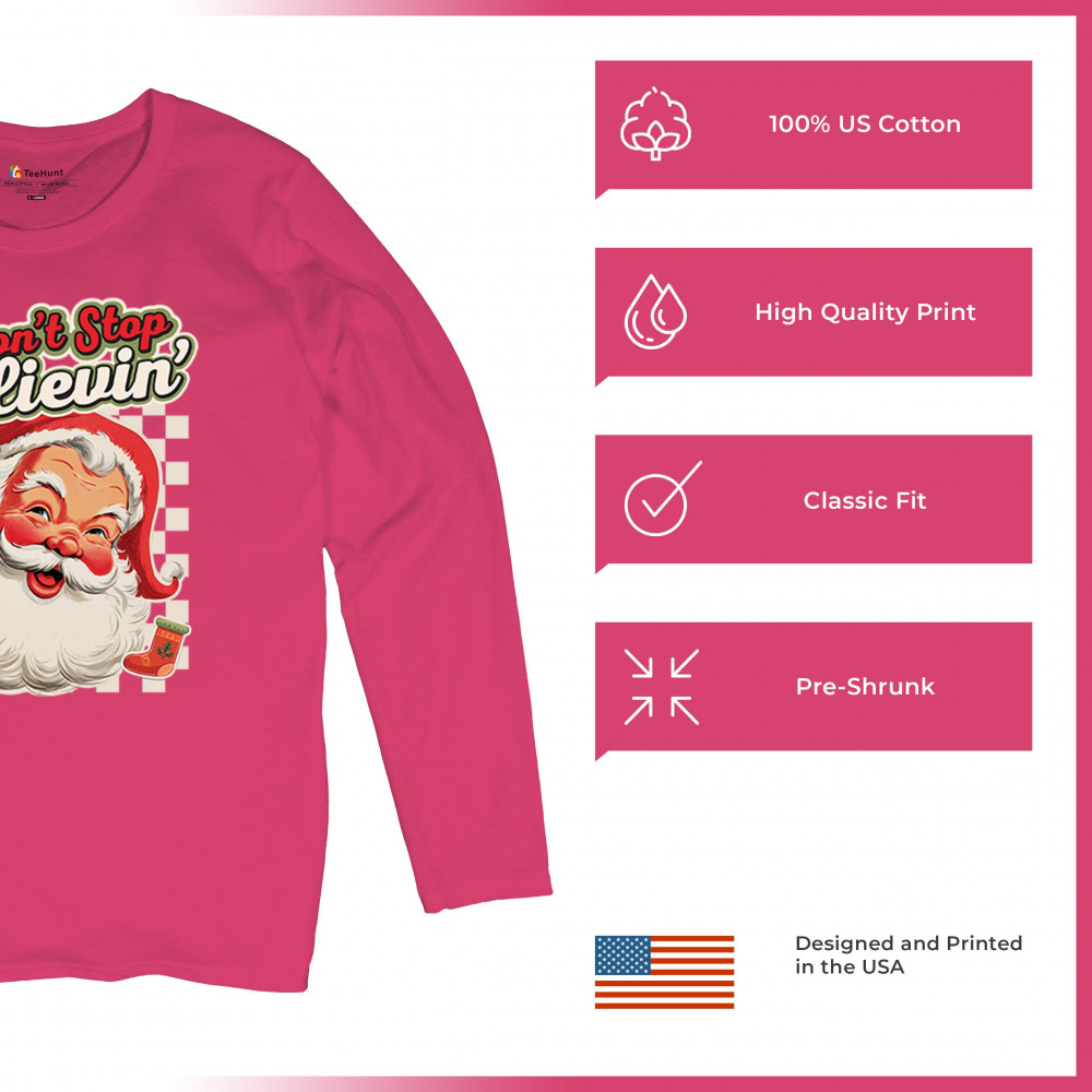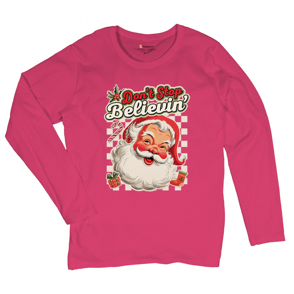 Spread holiday cheer with this “Don’t Stop Believing†Santa Claus shirt that blends classic Christmas spirit with cozy winter charm. Perfect for festive parties, family gatherings, or relaxing by the fire, this design captures Jingle Bells joy, Merry Xmas fun, Santa Claus magic, Reindeer delight, Rudolph glow, Snowman charm, and Christmas tree style for the perfect seasonal outfit.