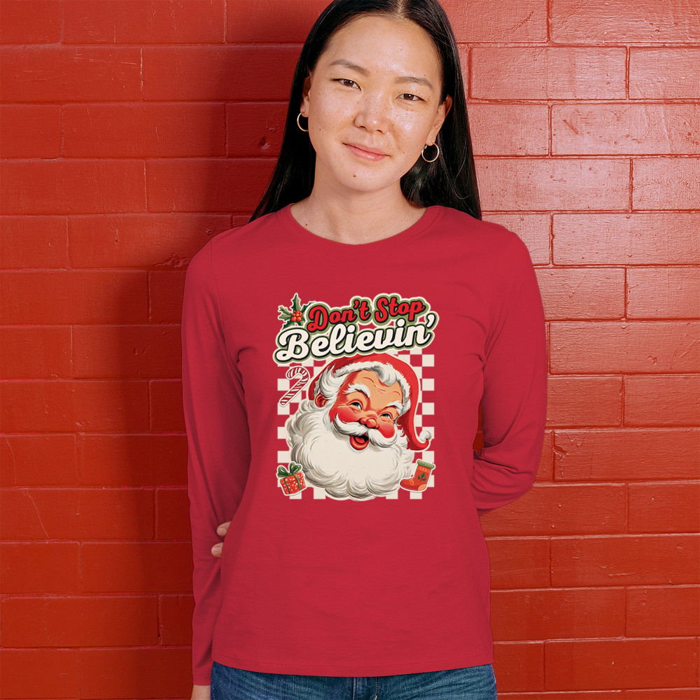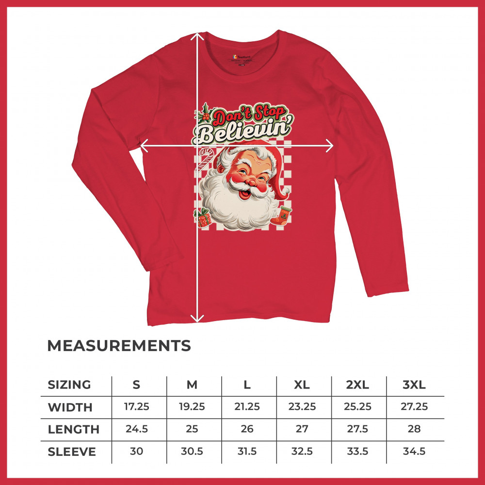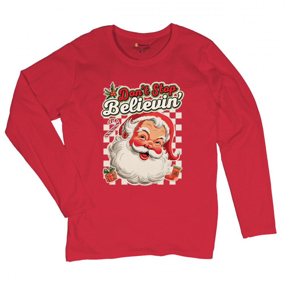 Spread holiday cheer with this “Don’t Stop Believing†Santa Claus shirt that blends classic Christmas spirit with cozy winter charm. Perfect for festive parties, family gatherings, or relaxing by the fire, this design captures Jingle Bells joy, Merry Xmas fun, Santa Claus magic, Reindeer delight, Rudolph glow, Snowman charm, and Christmas tree style for the perfect seasonal outfit.
