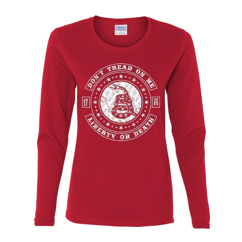 DON'T TREAD ON ME LIBERTY OR DEATH don't tread on me women's long sleeve tee liberty or death gadsden rattlesnake red