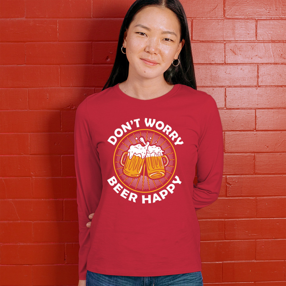 Spread joy with the "Don't Worry, Beer Happy" design, perfect for beer lovers. Ideal for casual outings and social gatherings.