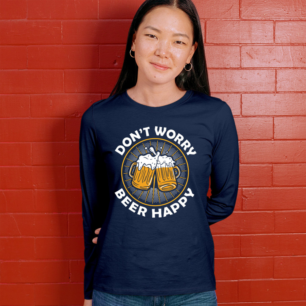 Spread joy with the "Don't Worry, Beer Happy" design, perfect for beer lovers. Ideal for casual outings and social gatherings.