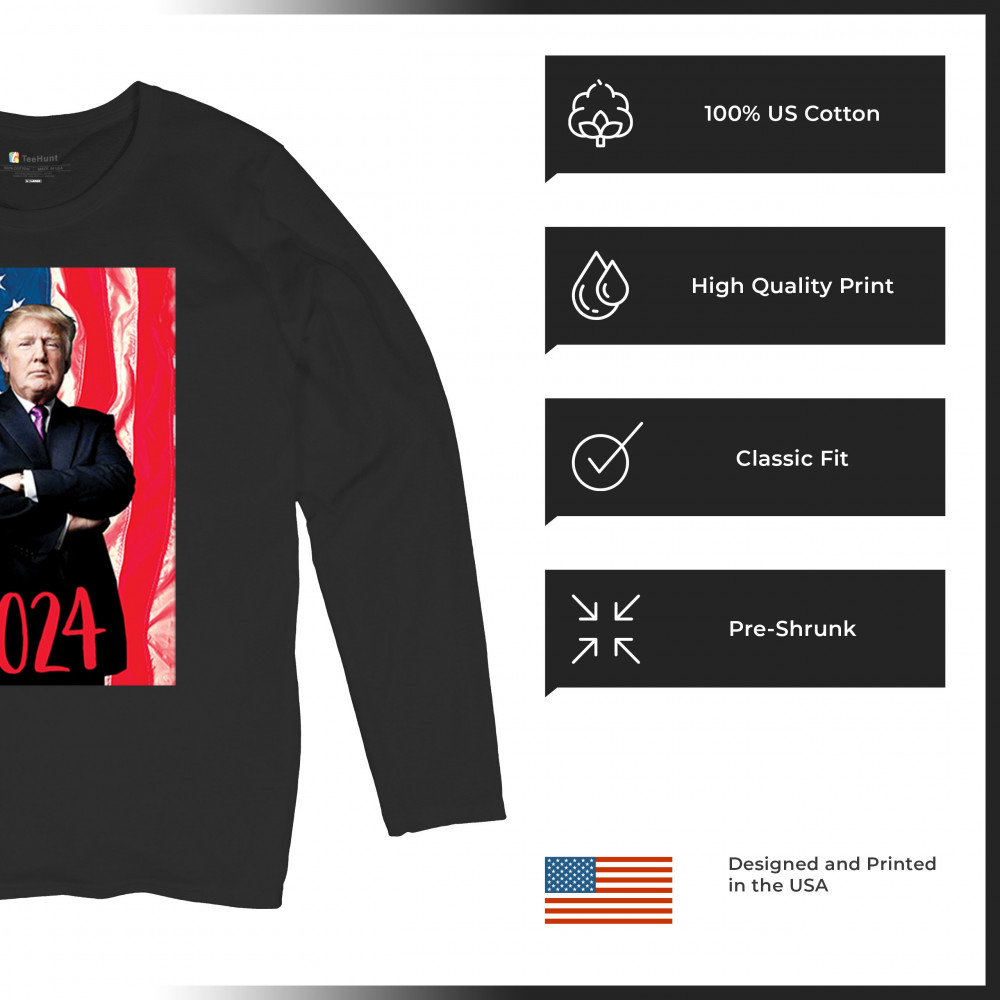 Stand proud with our Donald Trump 2024 design, a bold statement for America's future. Perfect for patriots and conservatives who champion victory, trust, and unity. Join the movement.